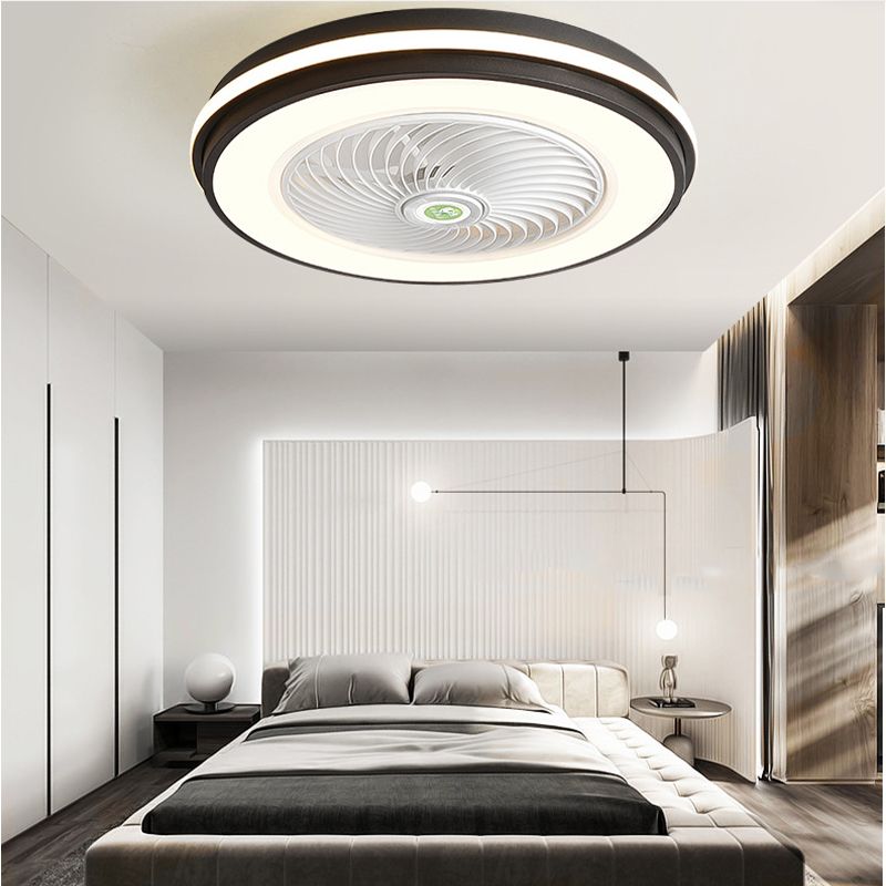 Einfachheit Ring geformt Deckenventilator Beleuchtung Acryl -LED -Schlafzimmer Halbblüzlicht in Schwarz und Weiß