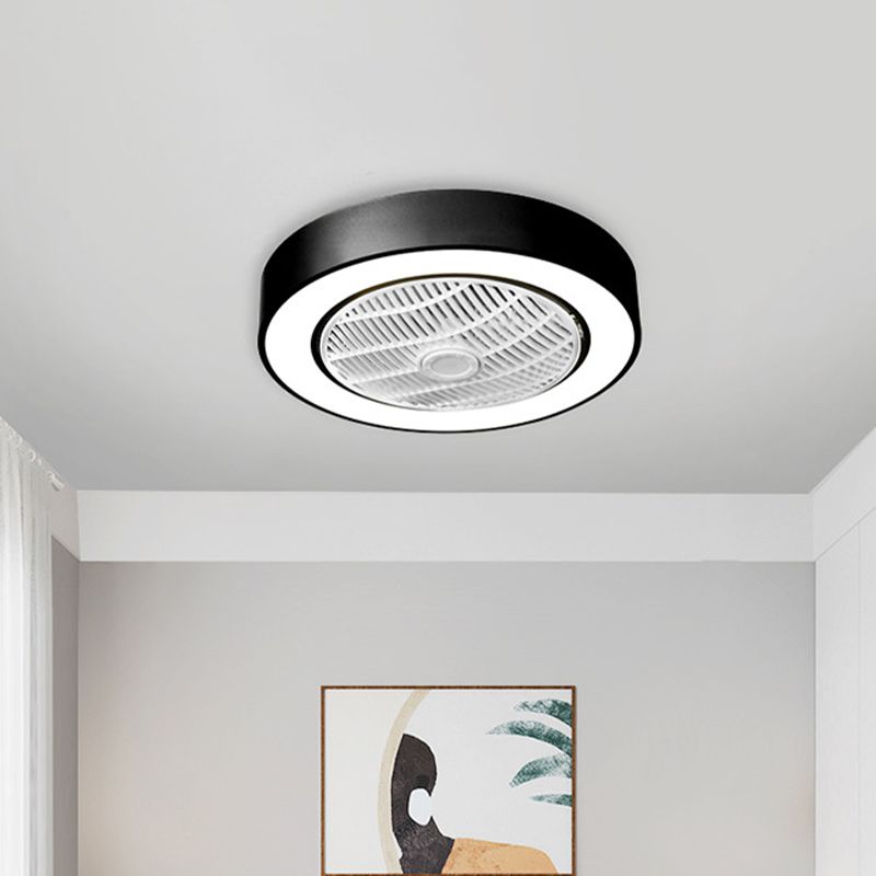 Moderne minimalistische kreisförmige LED -Deckenventilatoren lackierte Eisendecke Lüfter Licht mit Acrylschatten