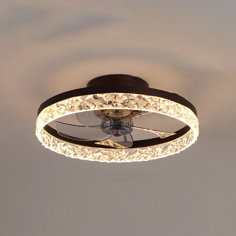 Moderne Einfachheit LED -Deckenventilator leichte schmiedeeiserne kreisförmige Flush -Berg mit Acrylschatten