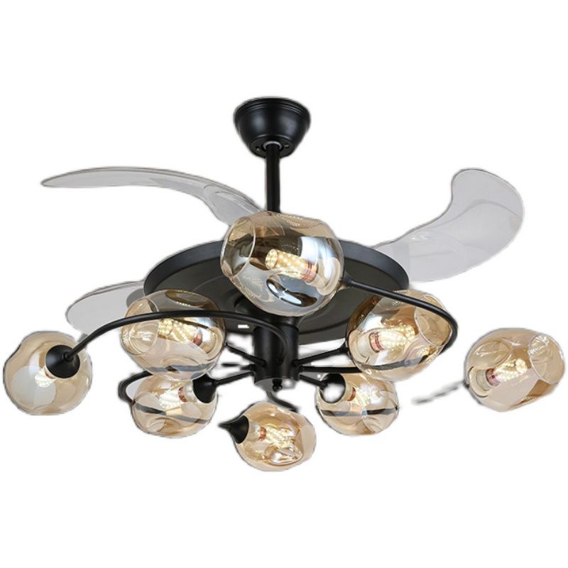 4-Blade-Sputnik Deckenlüfter Lampe Modern Opal Glass Wohnzimmer Halbblüzleuchte in Schwarz mit Fernbedienung