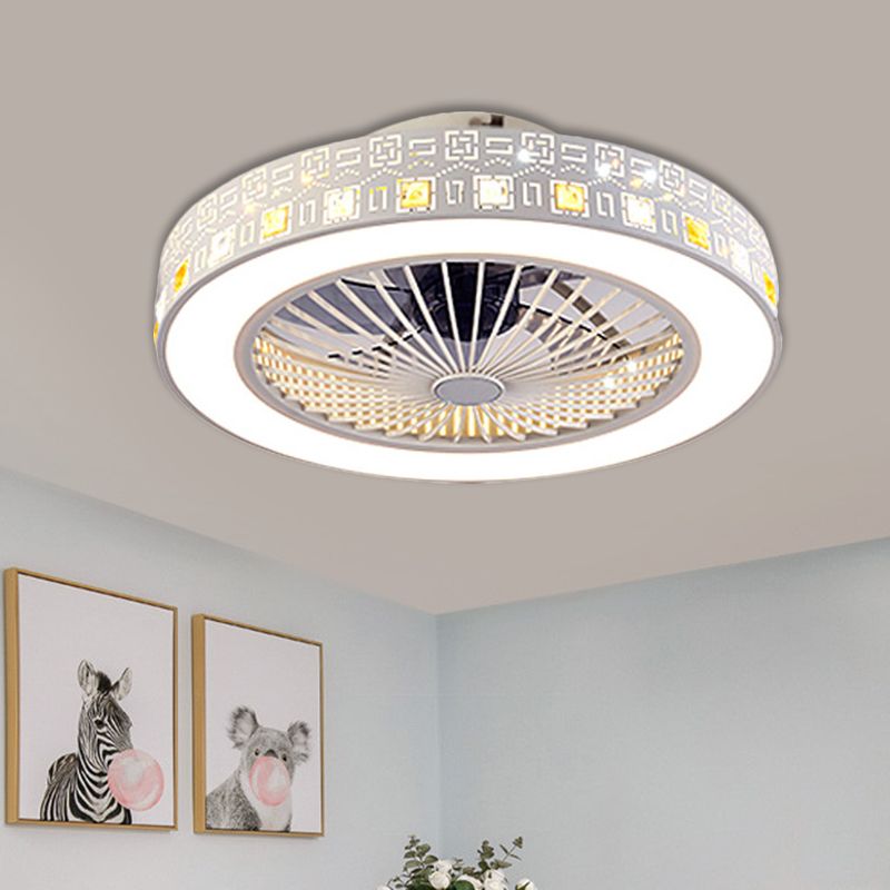19,5 "/21.5" W LED -Salon Semi Flush Modernismus Chrom Hängende Lüfterlicht mit kreisförmiger Acrylschatten