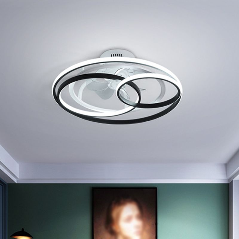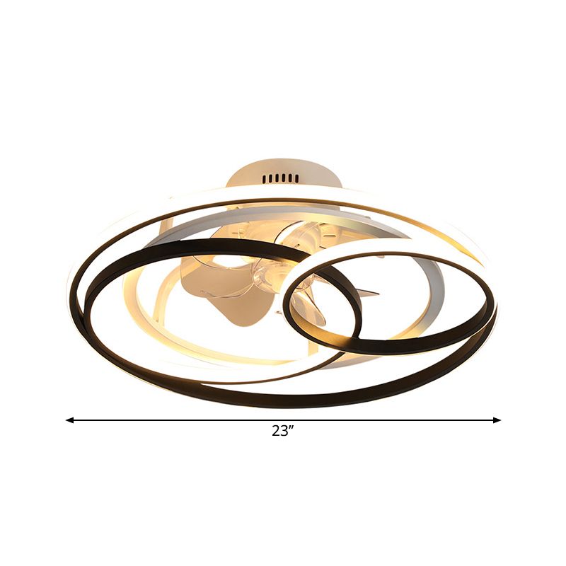 23 "W Circular Schlafzimmer Halbmontage Beleuchtung Metall LED Nordic Hanging Lüfterlampe in schwarzen, 7 klaren Klingen