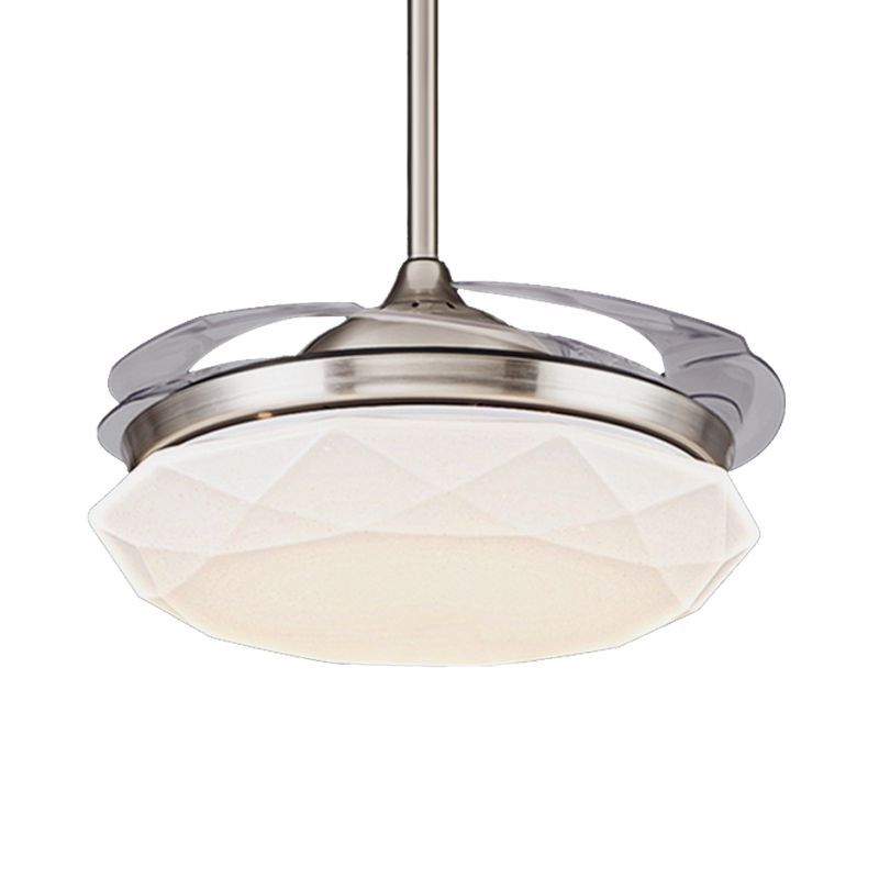4 Blätter weiße geometrische Anhängerlüfter Leuchte moderne Acryl Wohnzimmer LED SEMI BUSH LACKTURE mit Fernbedienung, 36 "/42" W.