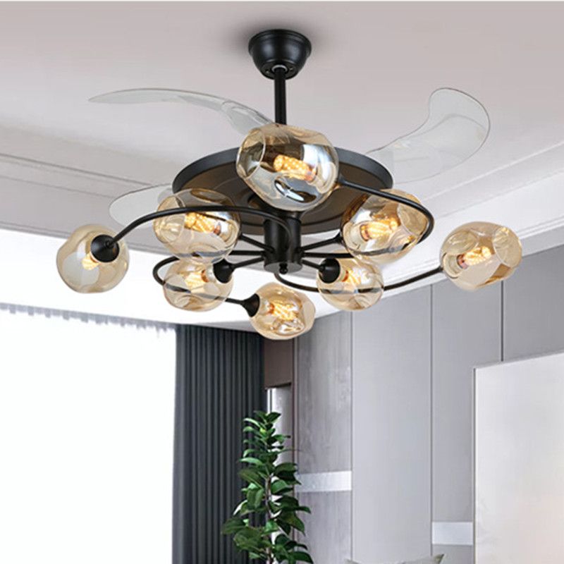 42 "W 4-Blade Retro Deckenlüfter Beleuchtung Blumenwirbel Fernbedienungssteuer