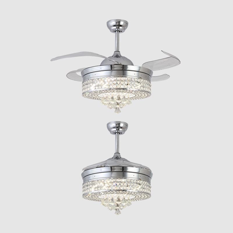 42 "W Chrom Round Hanging Lüfterlampe Minimalist abgeschrägtes Kristall -LED -Halbflush -Leuchte mit 4 Klingen