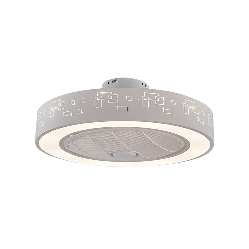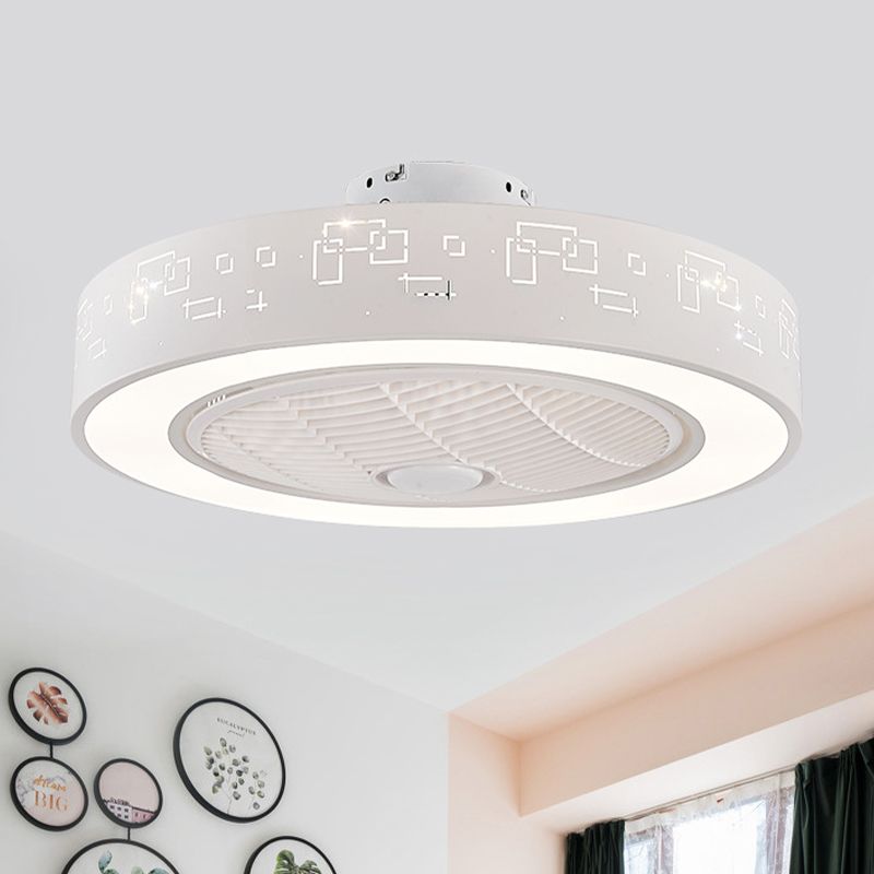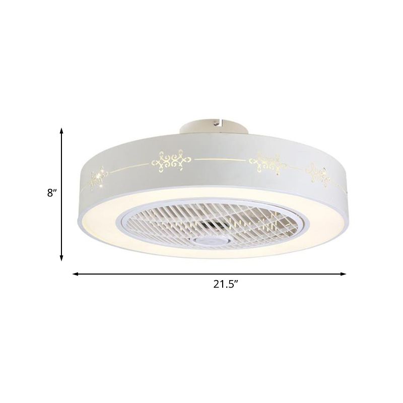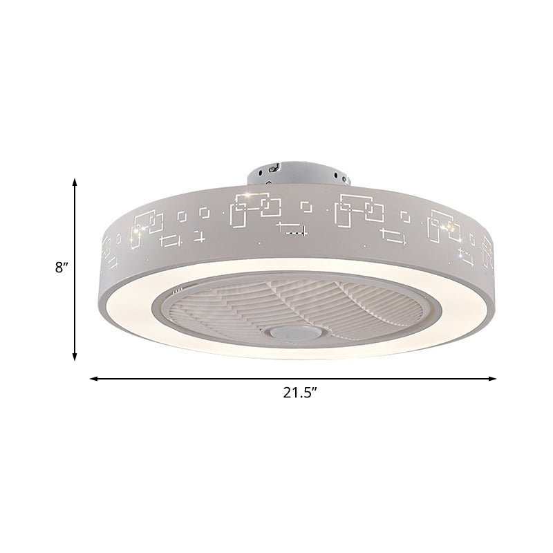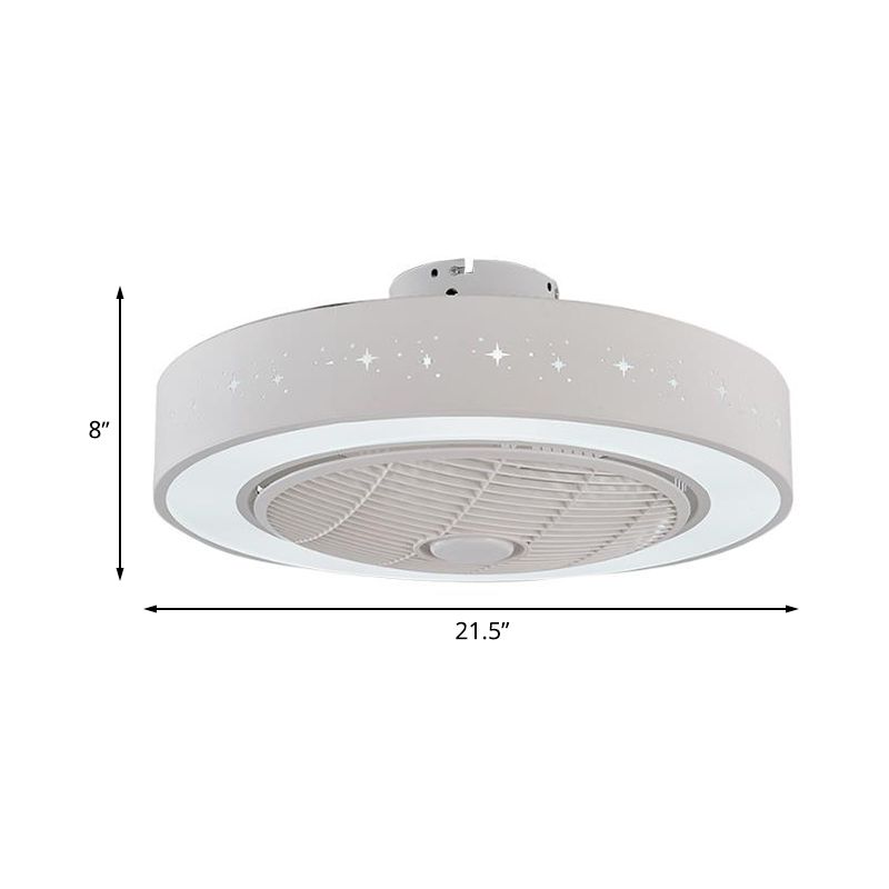 8 "hohe Drum Wohnzimmer Ventilator Leuchtt zeitgenössische Metall LED Weiß 3 Klingen Halbflush Mount Lighting Fixture