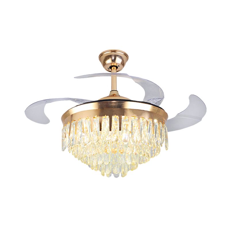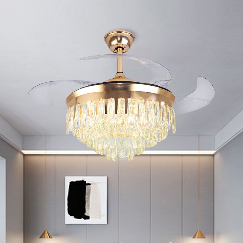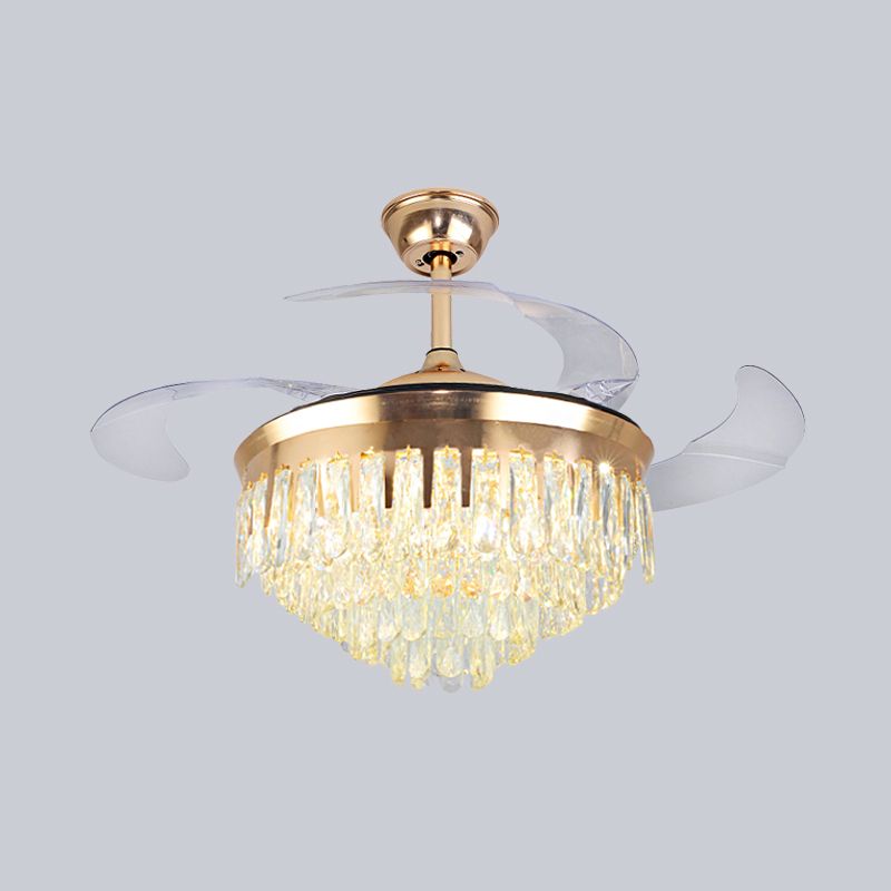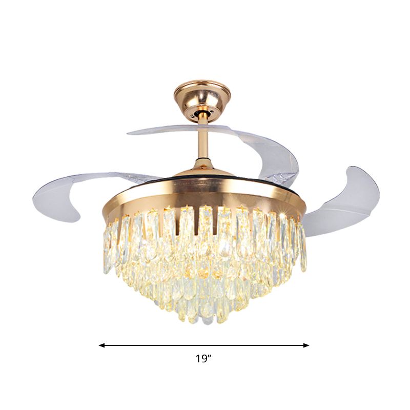 Cascading Deckenventilator Leuchte Einfacher Kristall Rechteck Great Room 19 "W LED Semi Flush in Gold mit 4-Blade