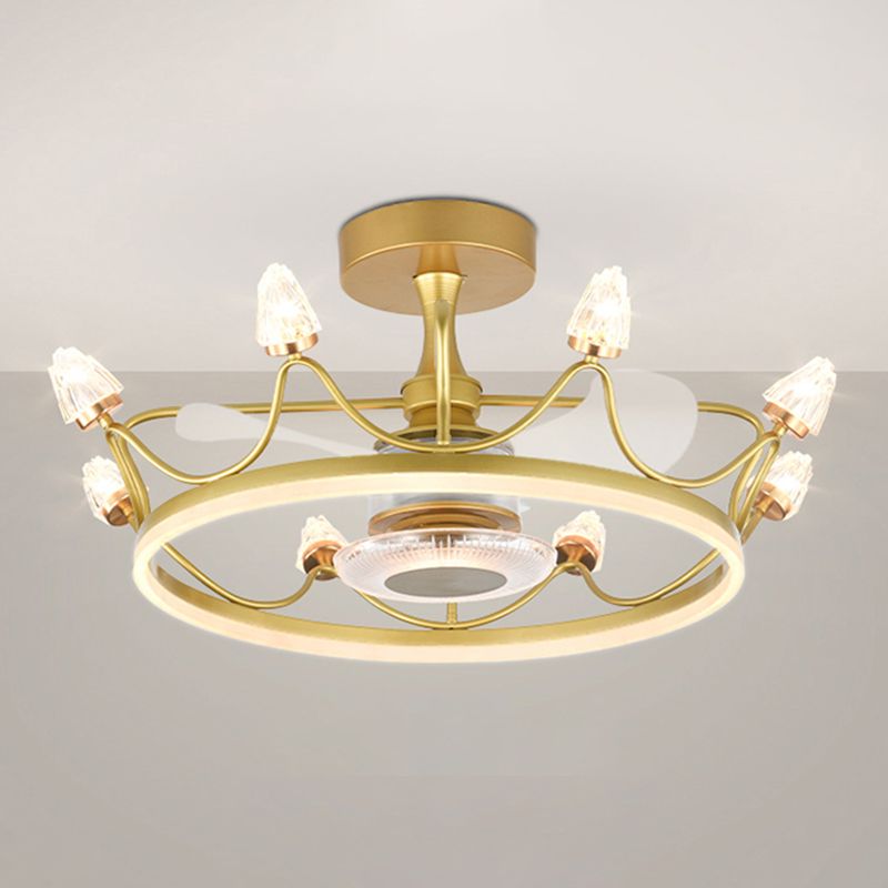 Gold Circular LED Semi Flush Mount Einfachheit Acryl Fernbedienungs Deckenlüfter Beleuchtung