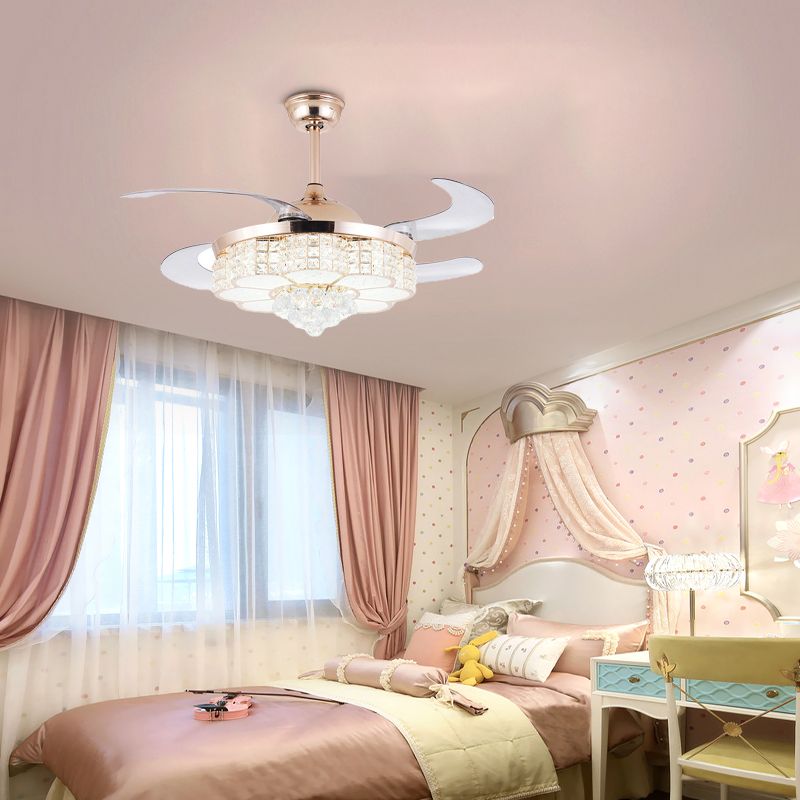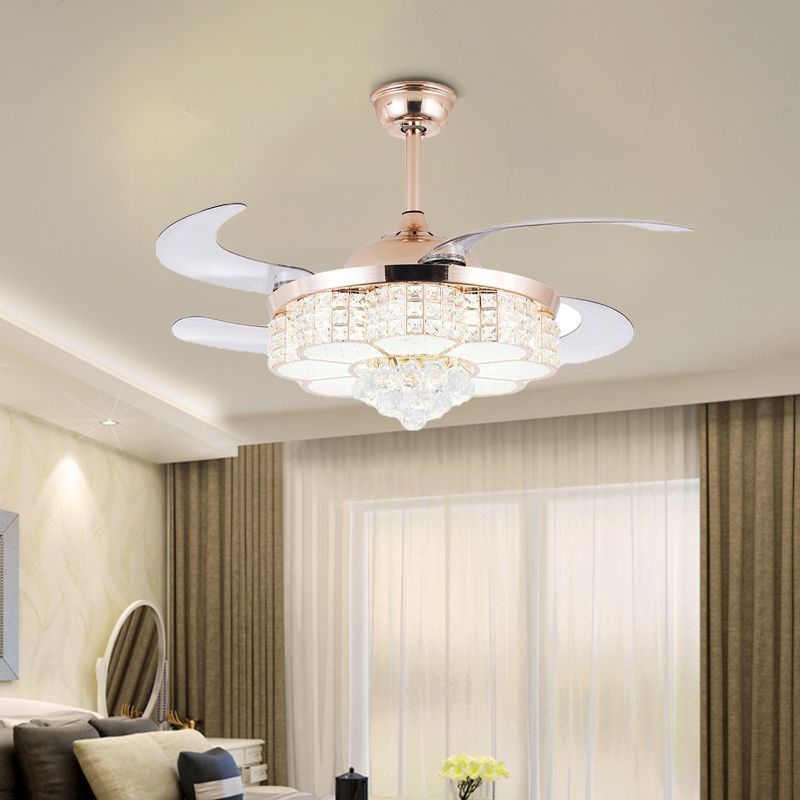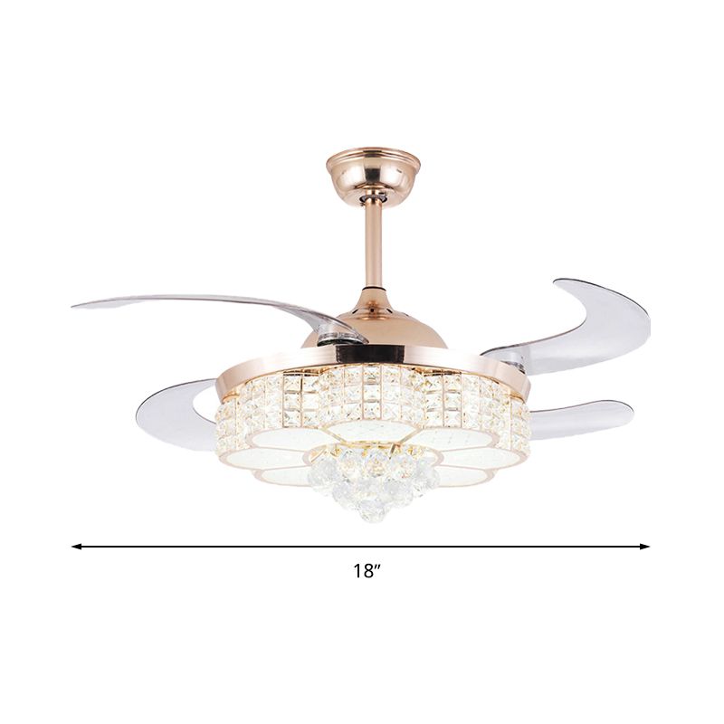 Goldblumendecke Lüfter Licht zeitgenössischer LED -Kristall -Halbblütenlicht mit Fernbedienung/Wandsteuerung/Fernbedienung und Wandsteuerung