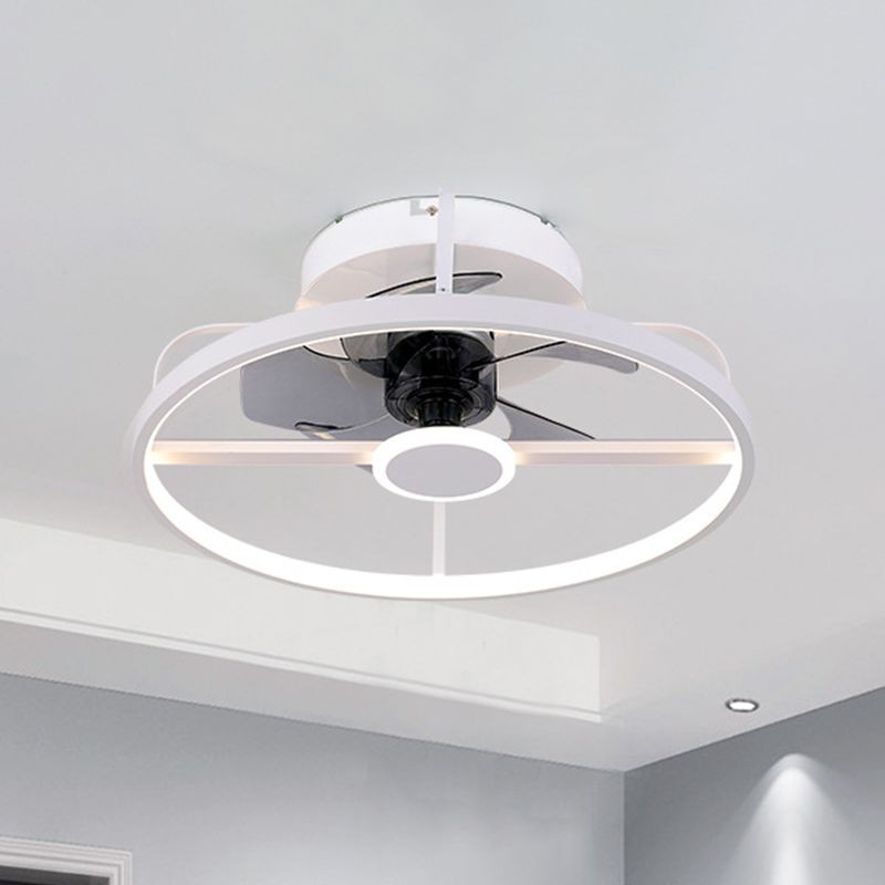 Kreis Anhänger Lüfter Licht Moderne Metall 18 "W LED White Semi Flush Mount Lampe mit 3 grauen Klingen