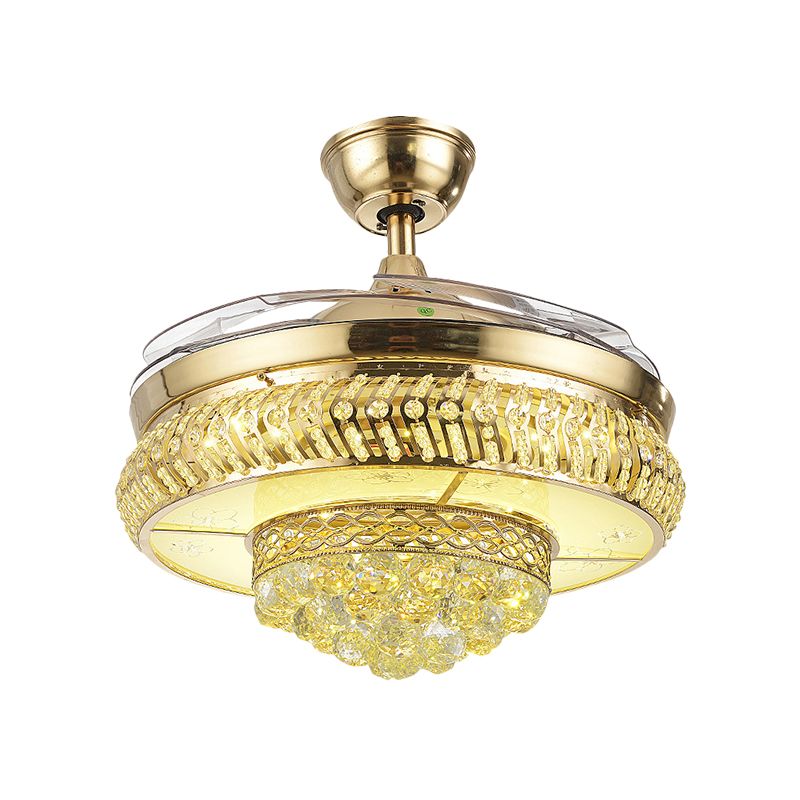 Kreisförmige tolle Raum Deckenventilator Leuchtdüfel mit Kristall 19 "W LED LED einfache Semi-Flush-Lampe in Gold, 4-Blade