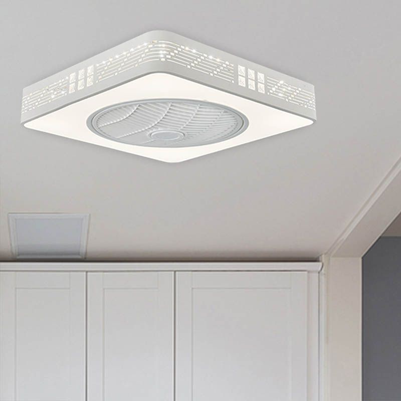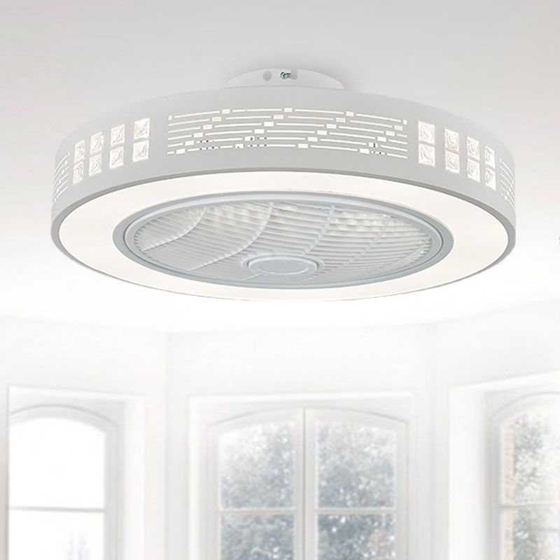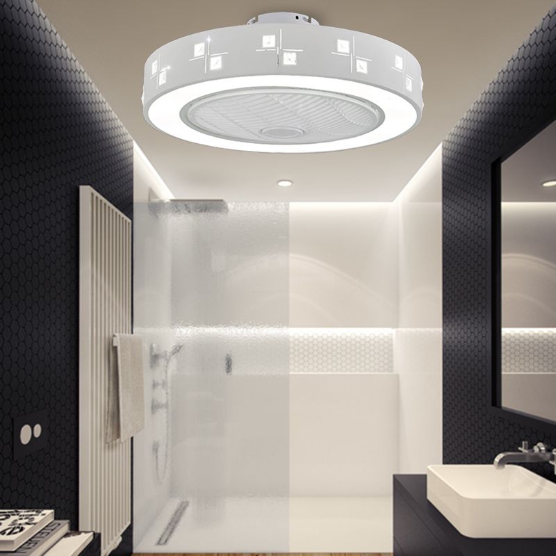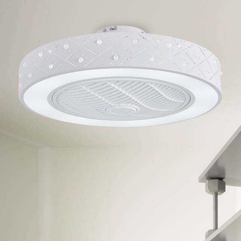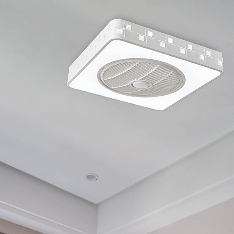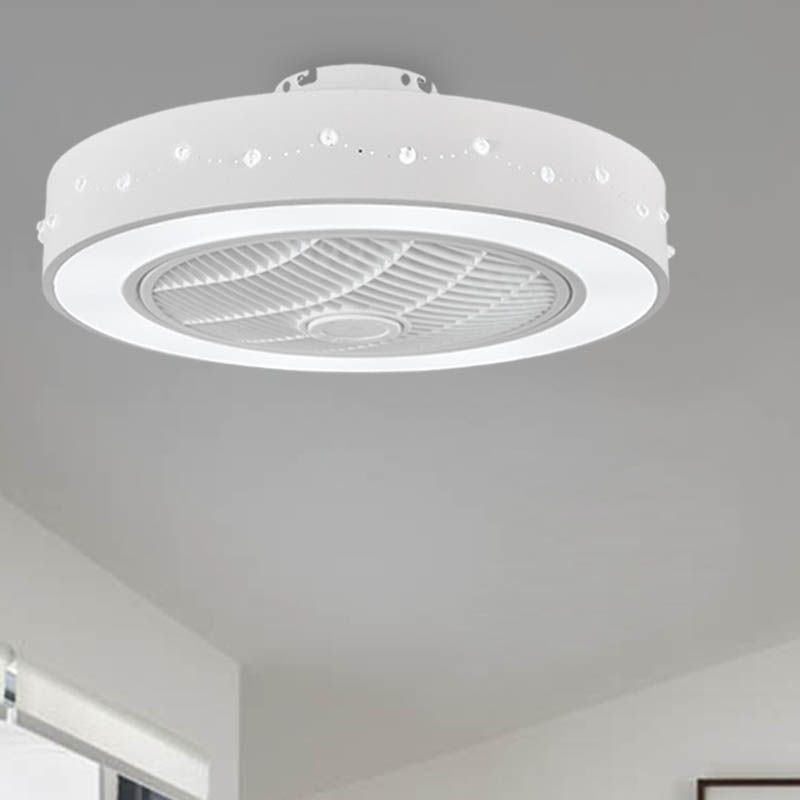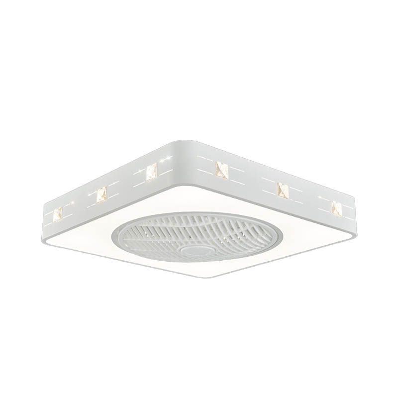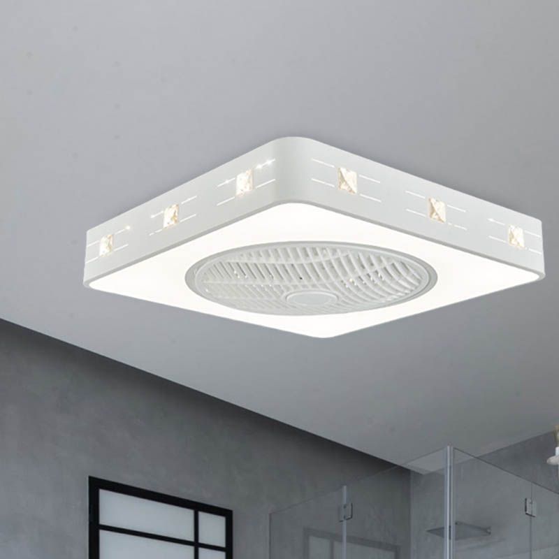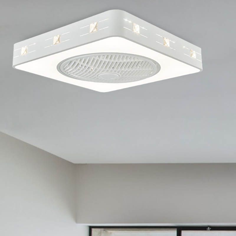 LED -Trommel/Box -Lüfter leichte minimalistische geschnitzte Kristall unsichtbare Klingen Deckenlampe in Weiß