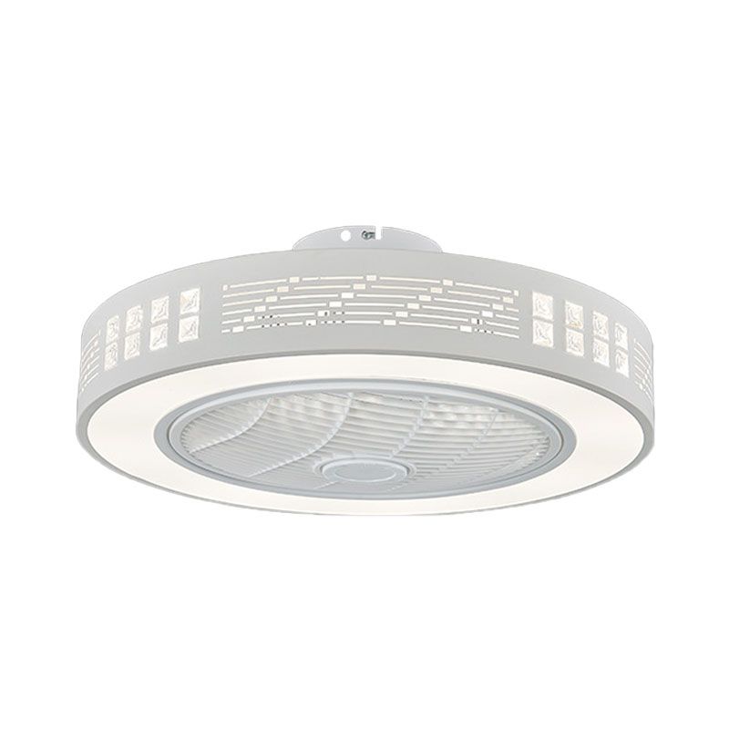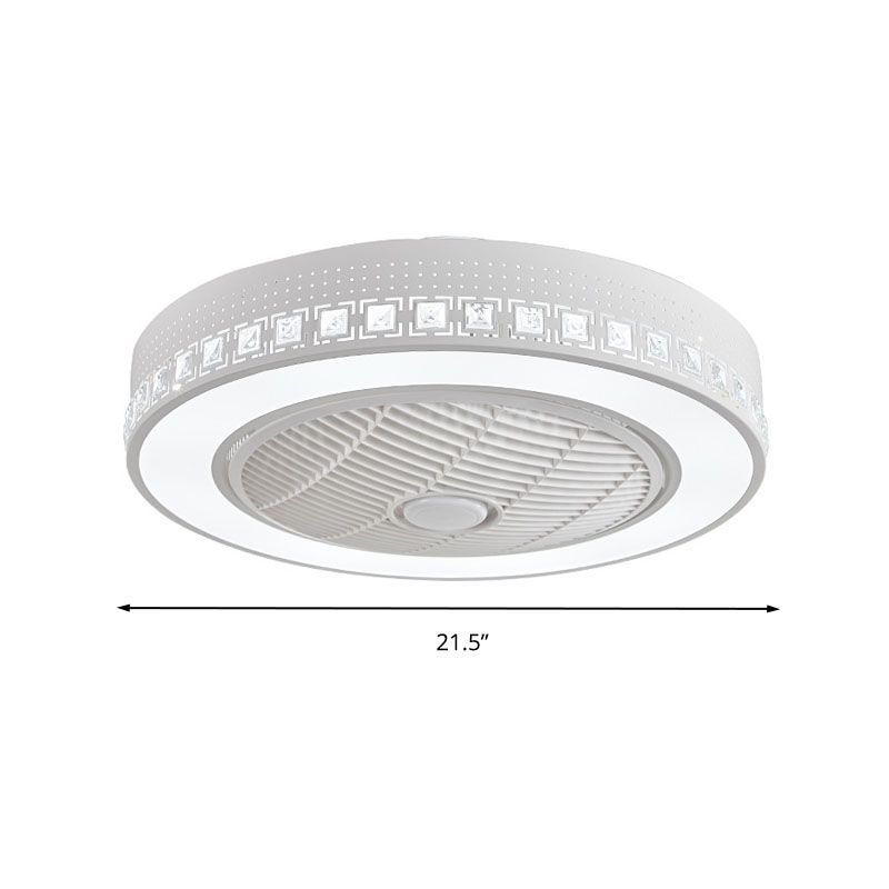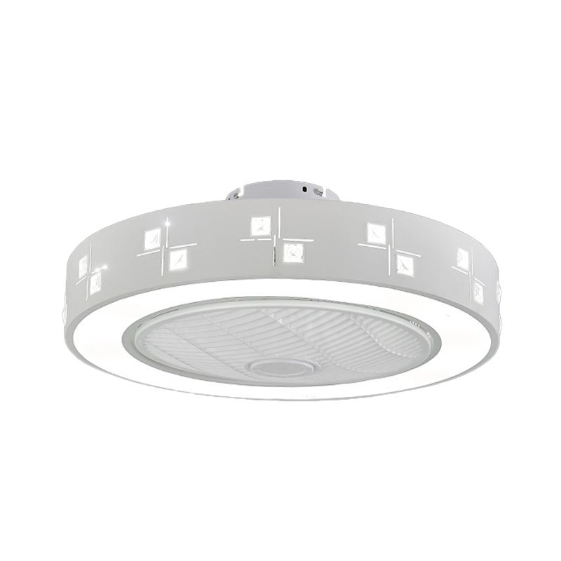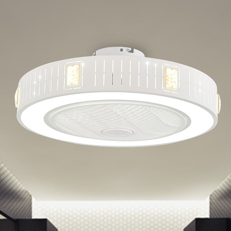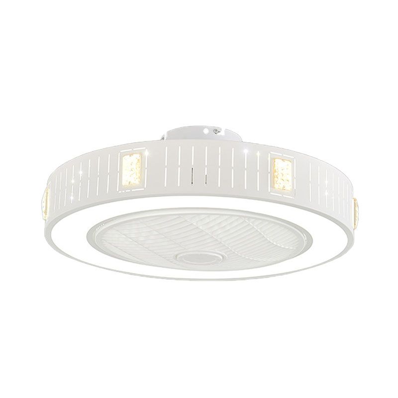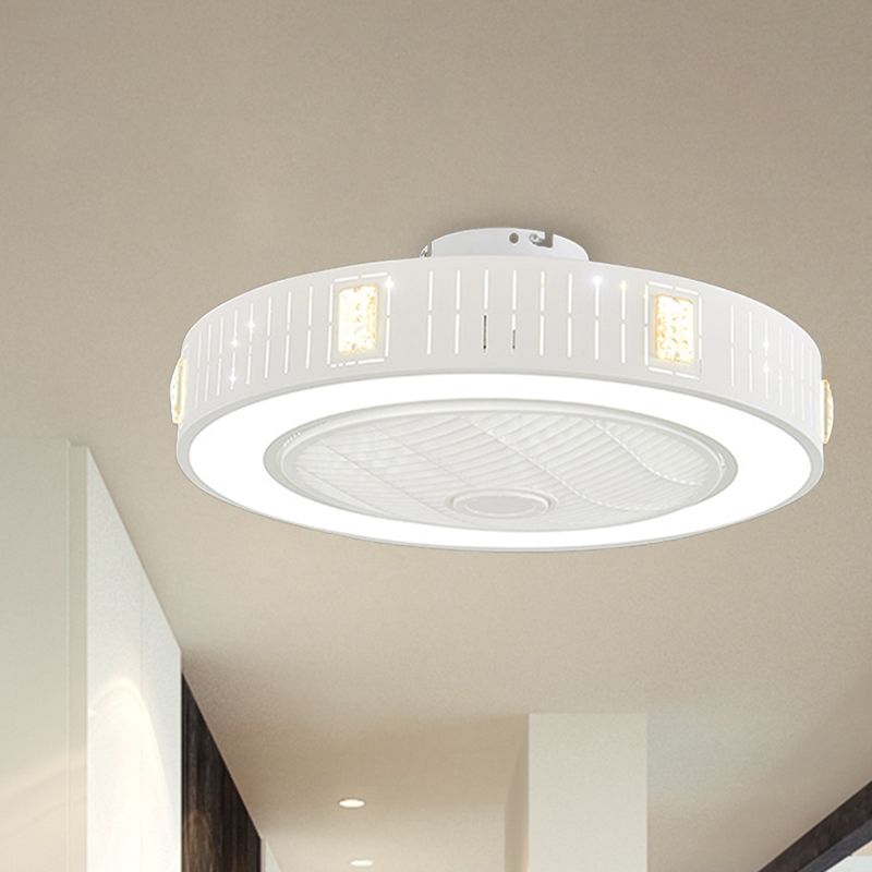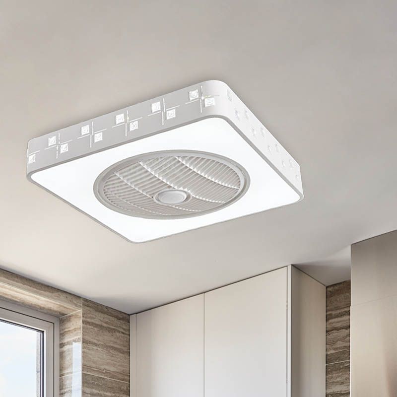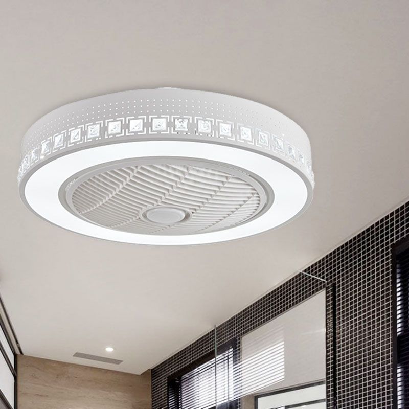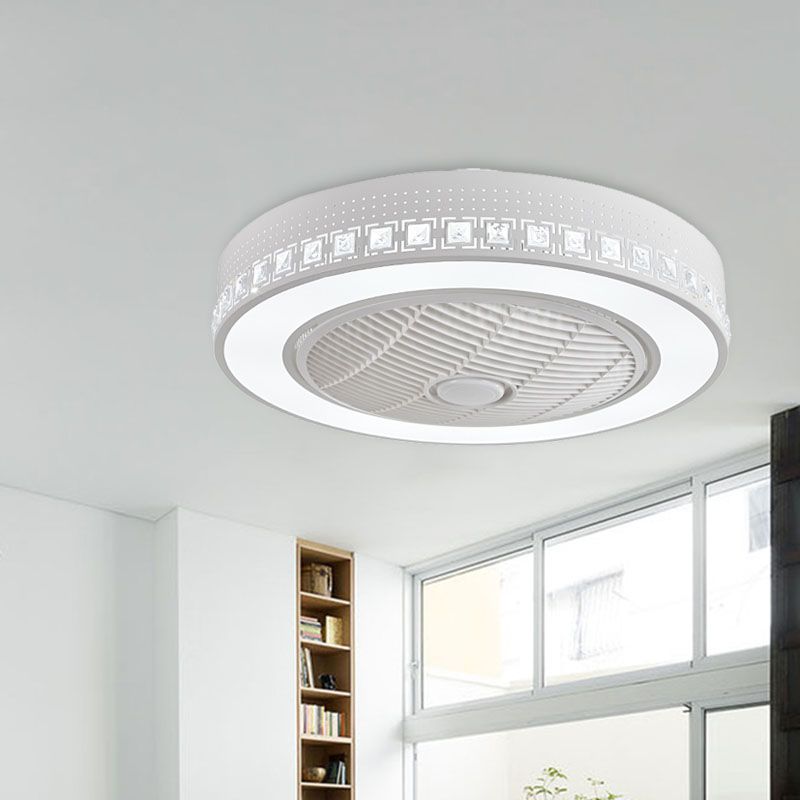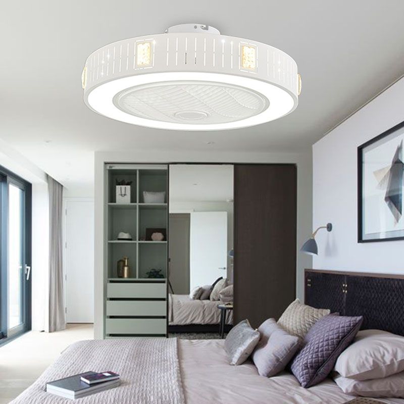LED -Trommel/Box -Lüfter leichte minimalistische geschnitzte Kristall unsichtbare Klingen Deckenlampe in Weiß