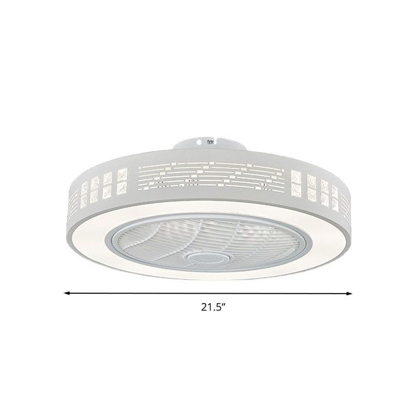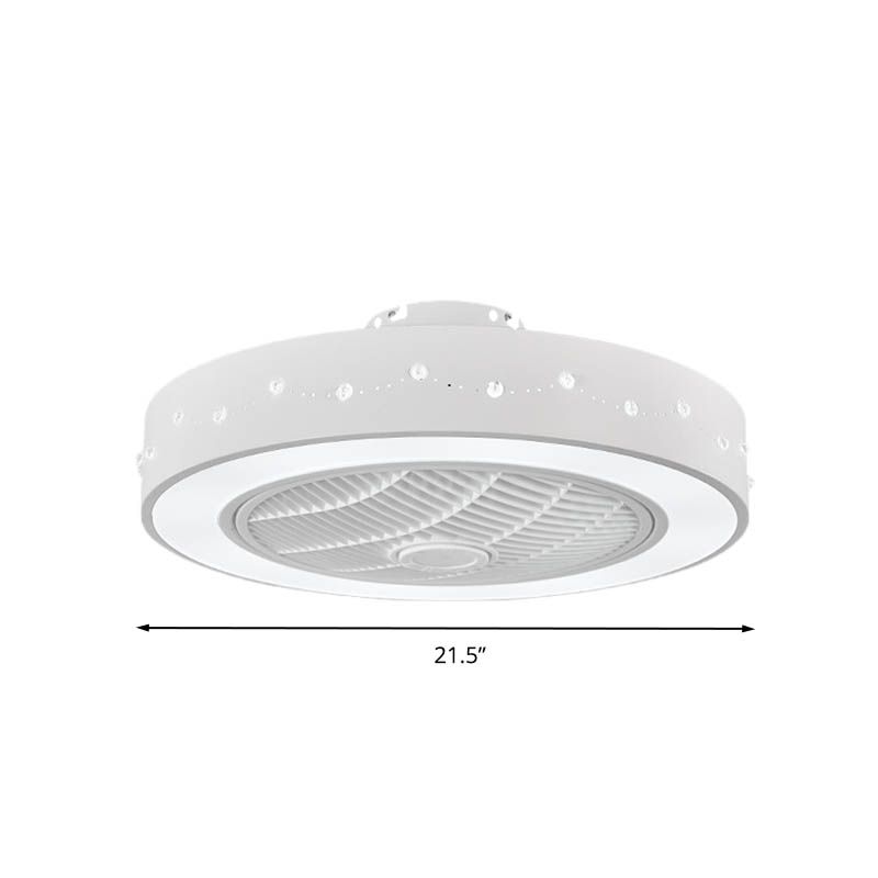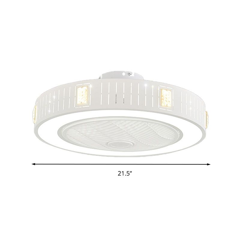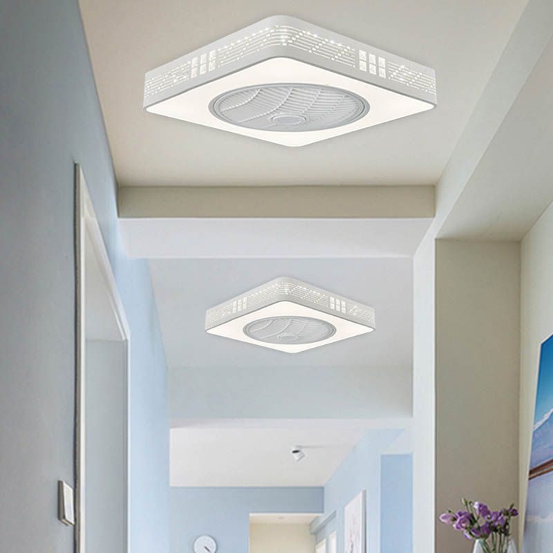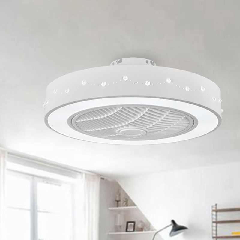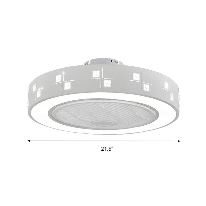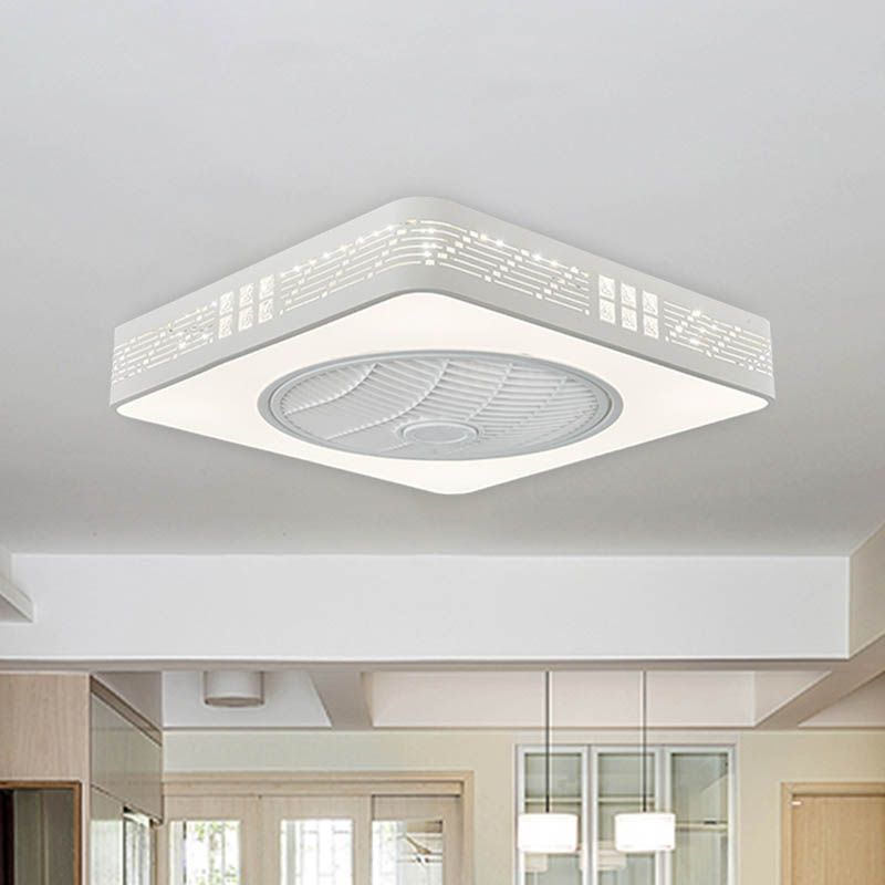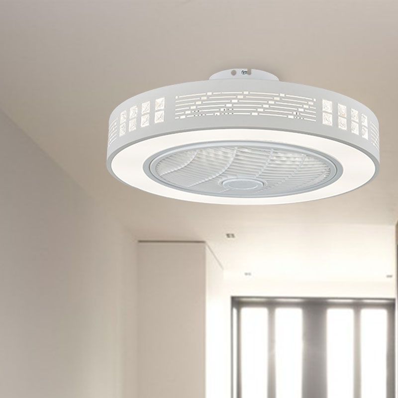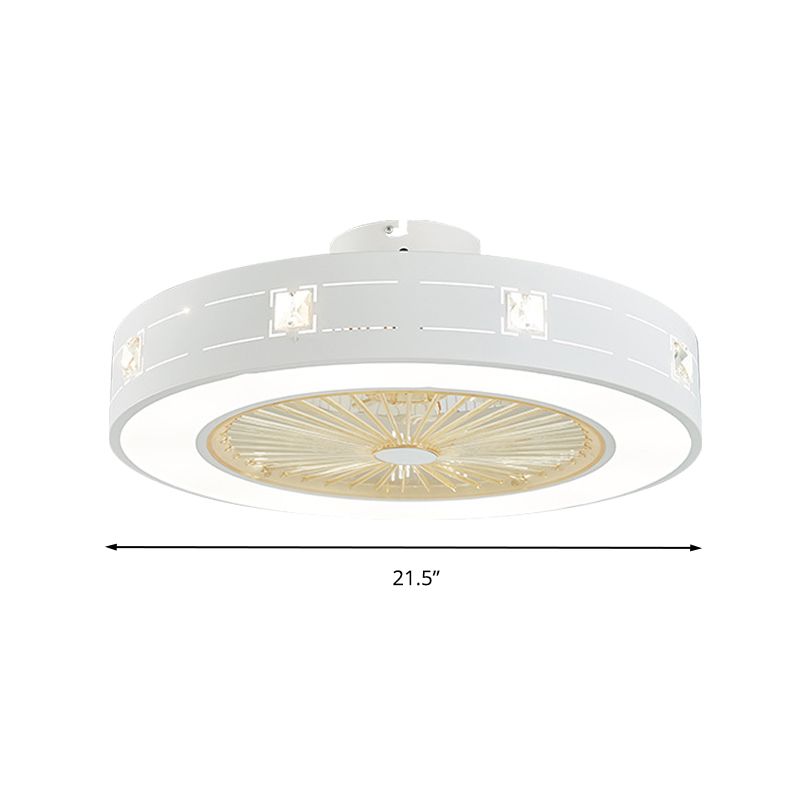 LED -Trommel/Box -Lüfter leichte minimalistische geschnitzte Kristall unsichtbare Klingen Deckenlampe in Weiß