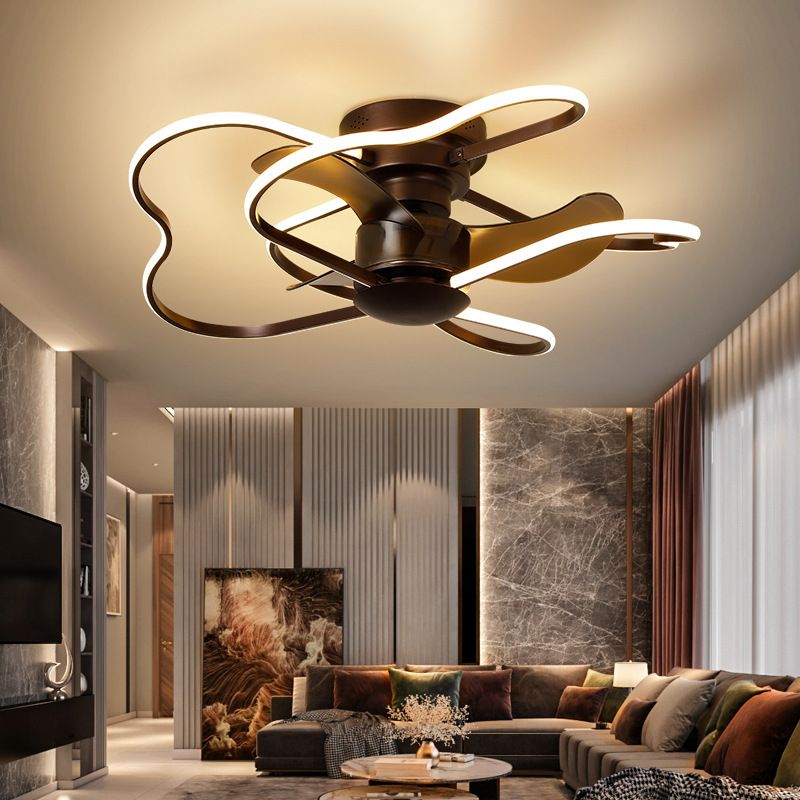 Metallblume halb Flush Deckenleuchte Moderne Fernbedienung 5-Blade-LED-Lüfterlampe