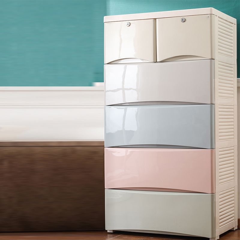Modern Chest Nursery Dresser Plastic Kids Nightstand with 5/6 Drawers