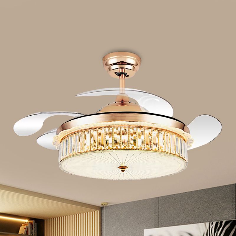 Trommelanhänger Lüfter Lampenlampenminimalist Kristall Rechteck Silber/Gold 19 "Breite LED Semi Flush mit 4-Blade