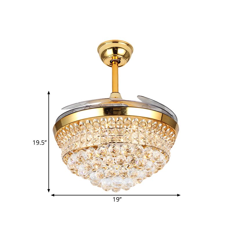 Verjüngte abgeschrägte Kristall -Halbblüte -Lampe Minimalist 19 "Breite LED GOLD HANGING LIFFLABEN mit 4 Klingen