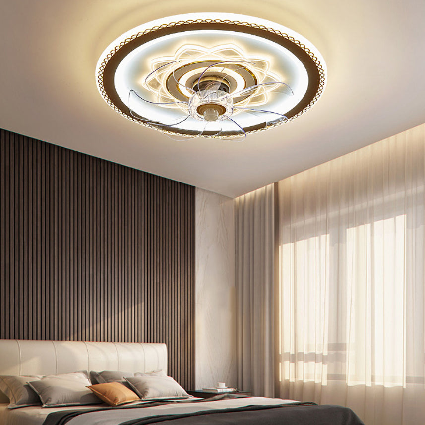 Weiße und goldene runde Lüfterlampe Einfachheit LED ACRYLIC SEMI BUSH Deckenleuchte mit Fernbedienung