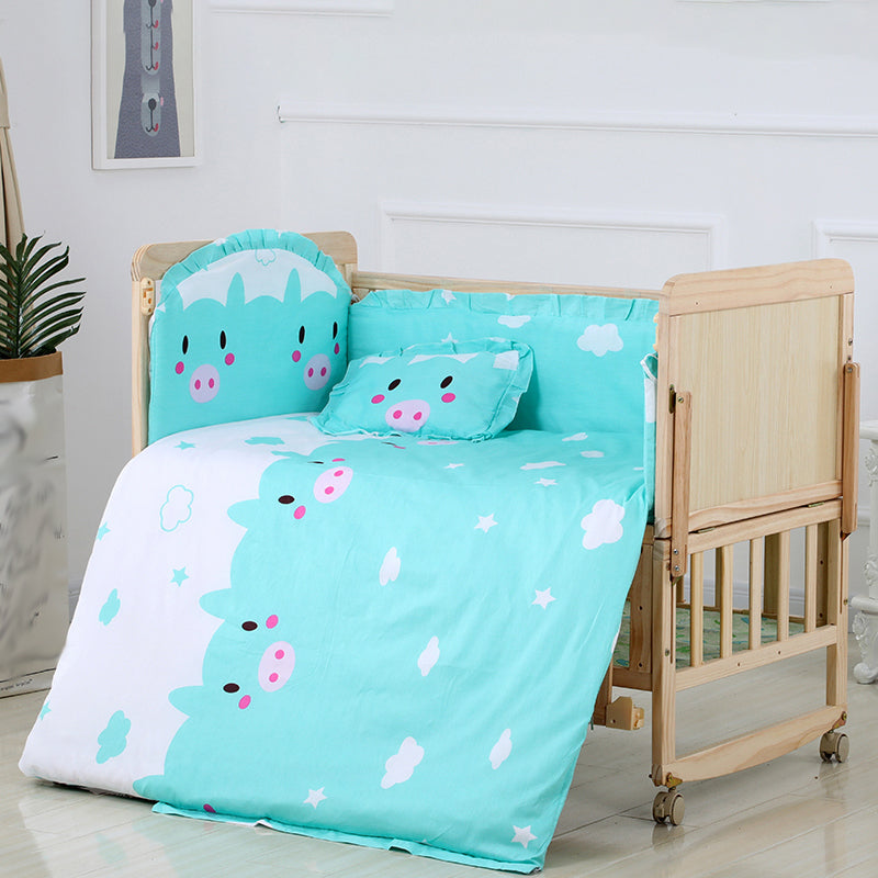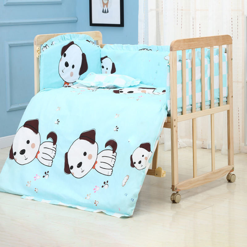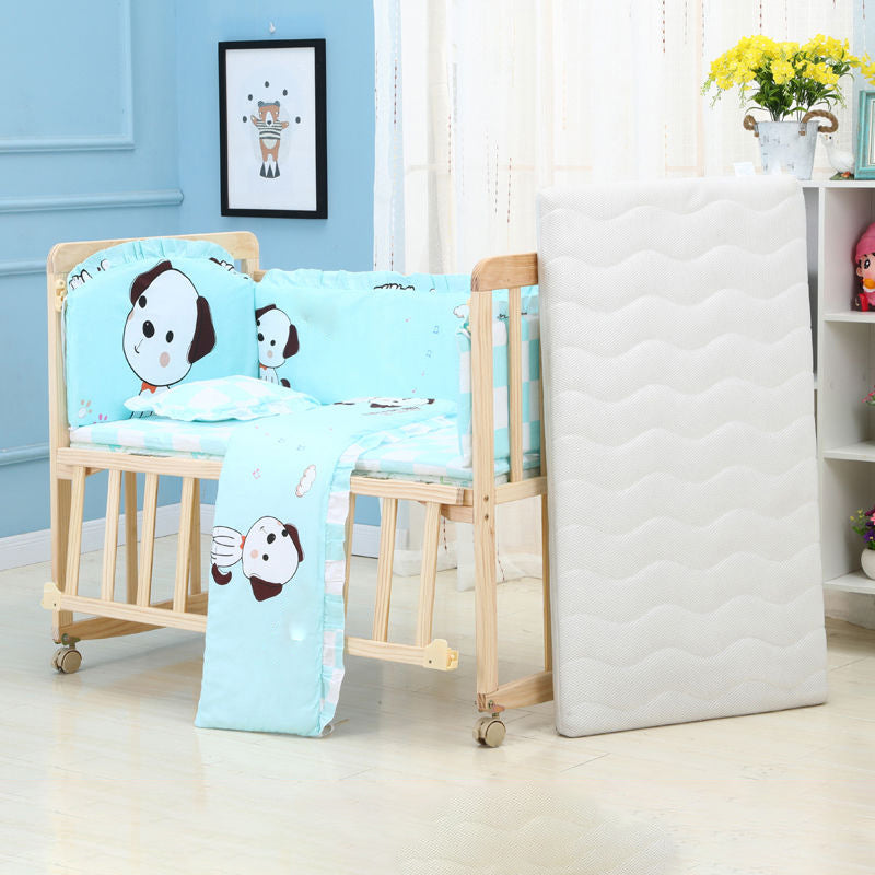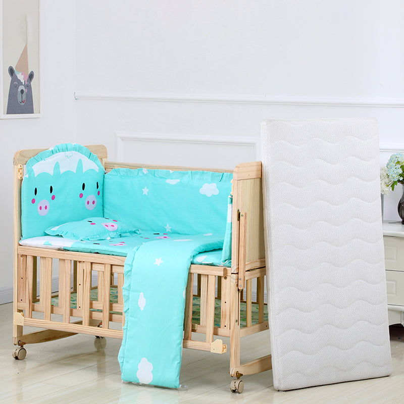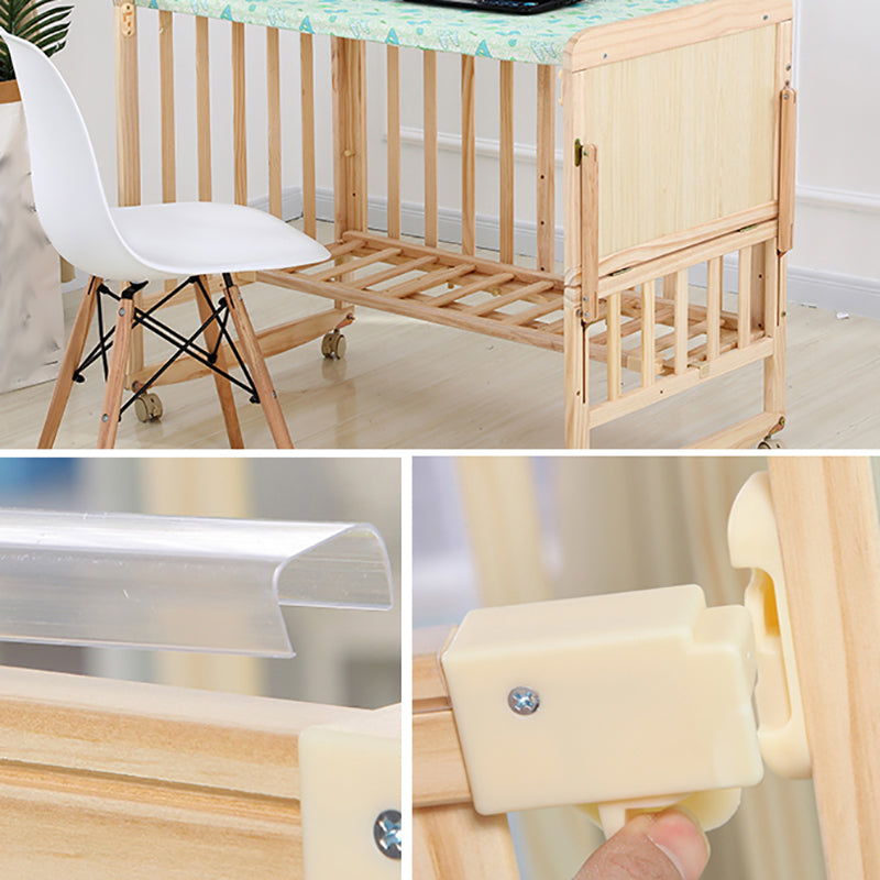 Wooden Animal Pattern Nursery Crib Modern Storage Nursery Bed with Casters