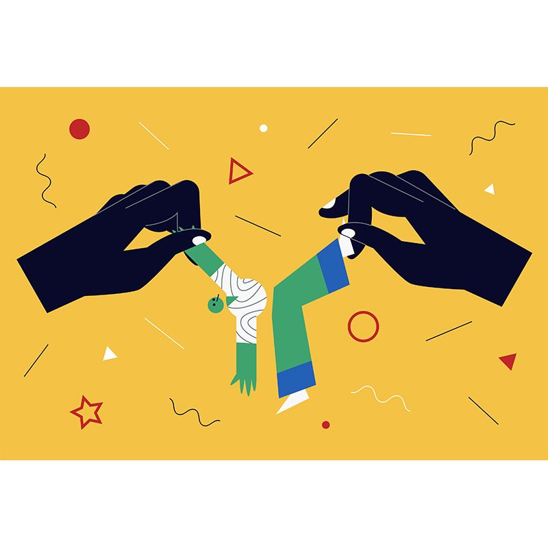 Yellow Modern Wallpaper Mural Big Hand Manipulated Puppet Wall Art for Living Room