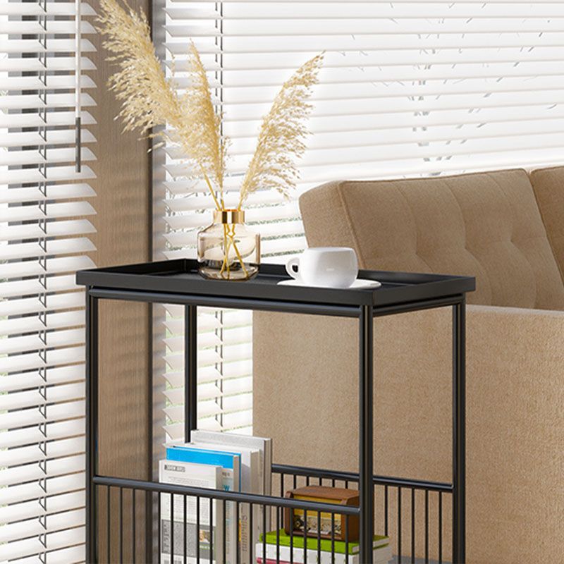 Mid-Century Metal Rectangle Tray Top Side Table 4 Legs End Table with Storage