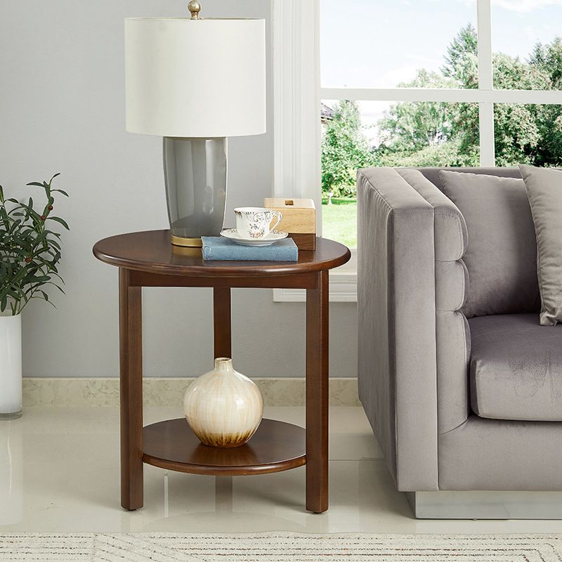 15.75 inch Wide Mid-Century Side Table Double Tier Round Side End Table