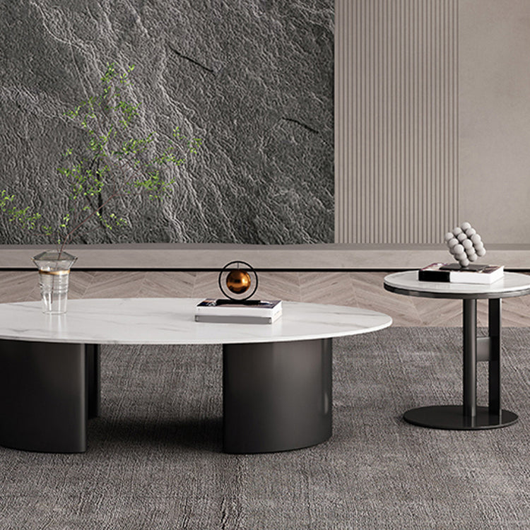 Modern Style Round Slate Table Plate Metal Frame Base Coffee Table