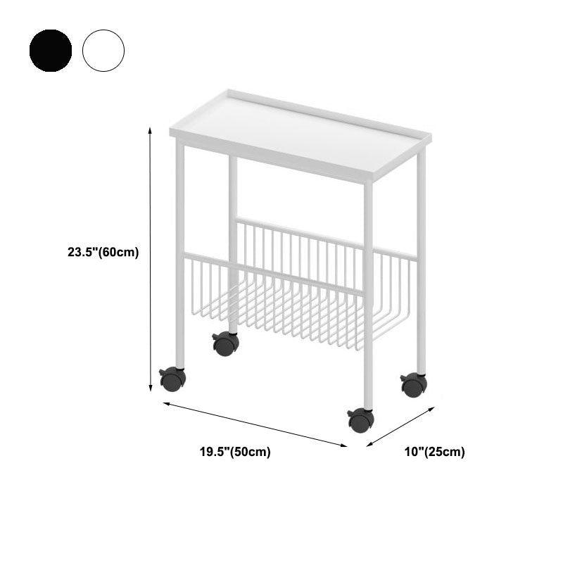 Rectangular Side Table with Wheel Base Mid-century Modern Style with Storage Shelf