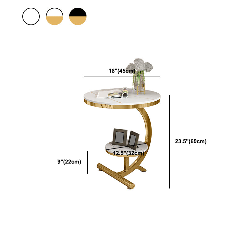 Contemporary Metal 4 Legs End Table Round Double Tier End Table