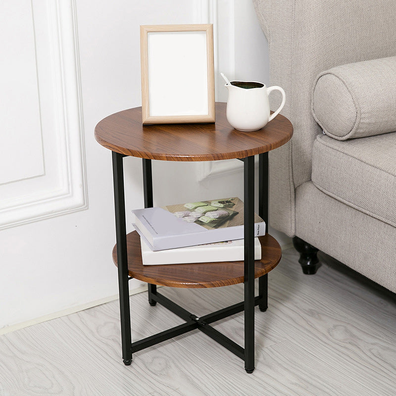 Modernistic Round Double Tier End Table Solid Wood 4 Legs End Table