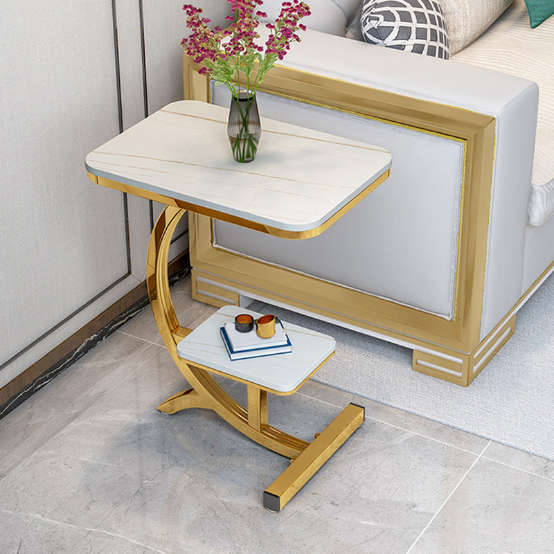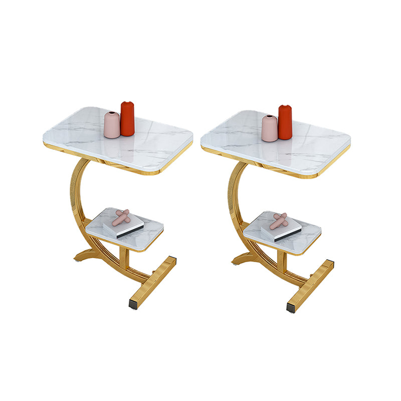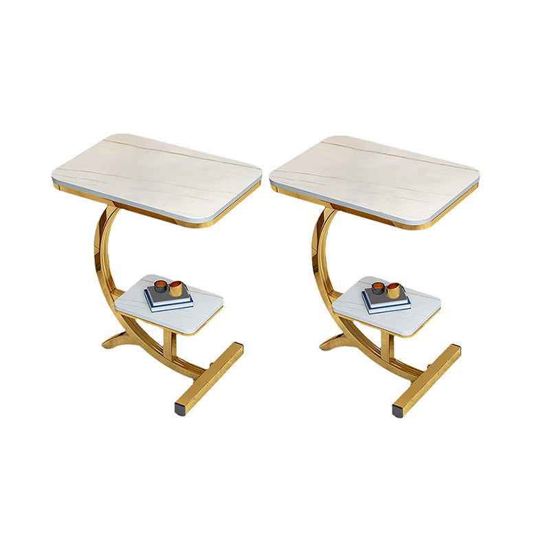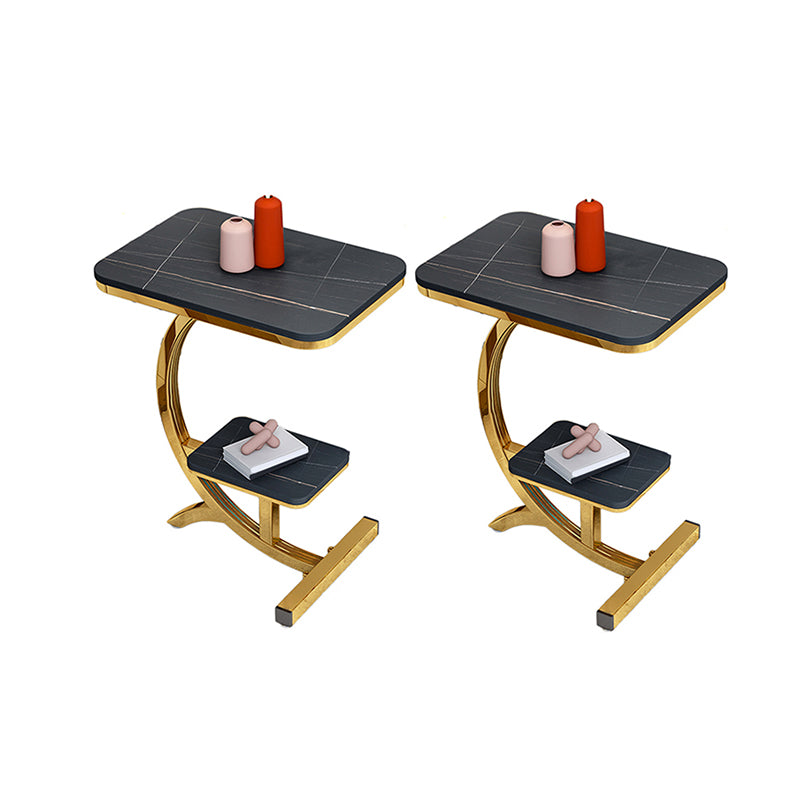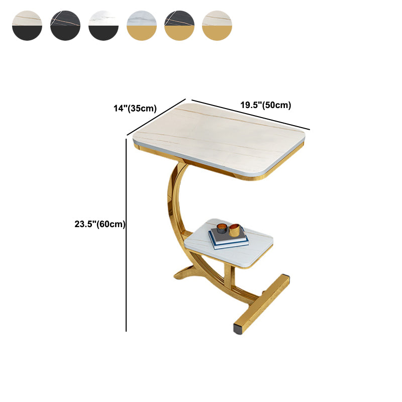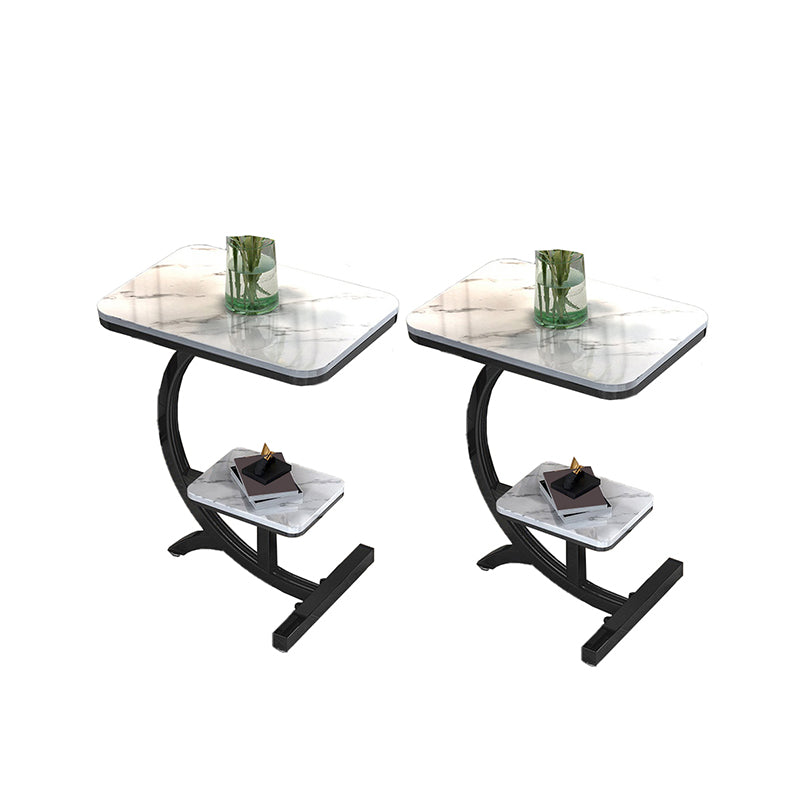 2-Tier Modernistic Metal C Side Table Slate Top Rectangular End Table