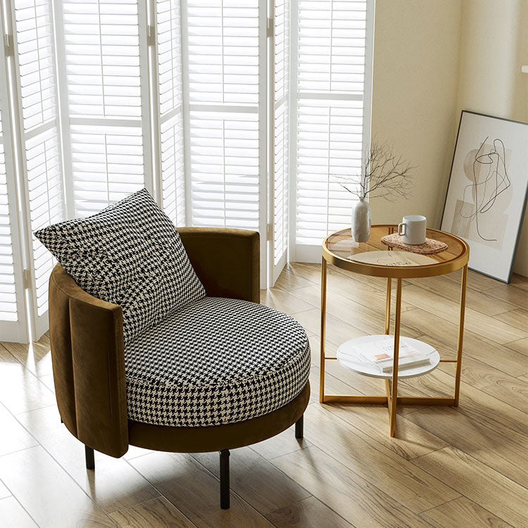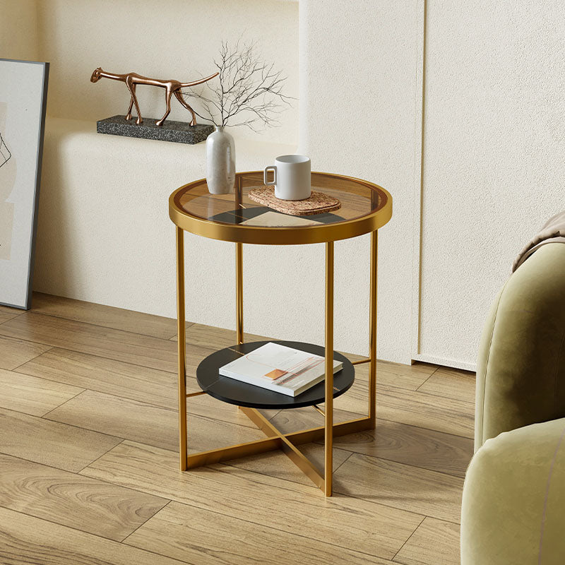 21.65" Tall Iron Cross Legs End Table Round Glass Top Side Table
