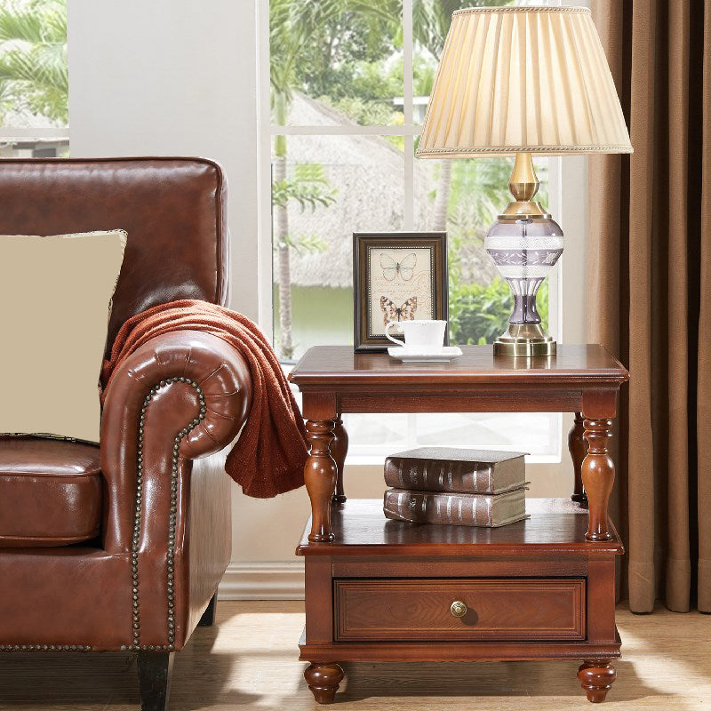 23.6" Tall Square Wood Top Side Table Brown 4 Legs End Table with Storage