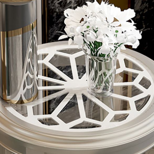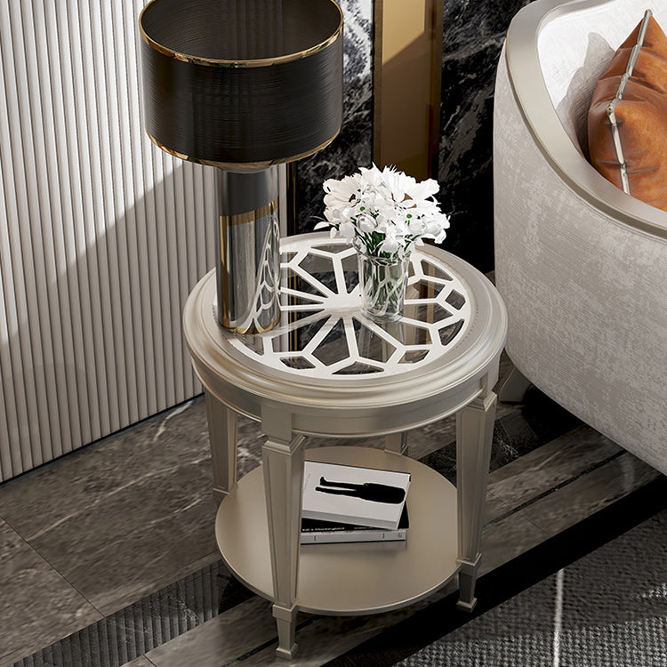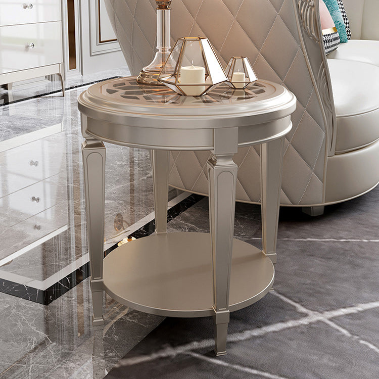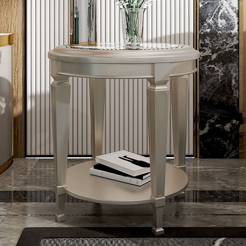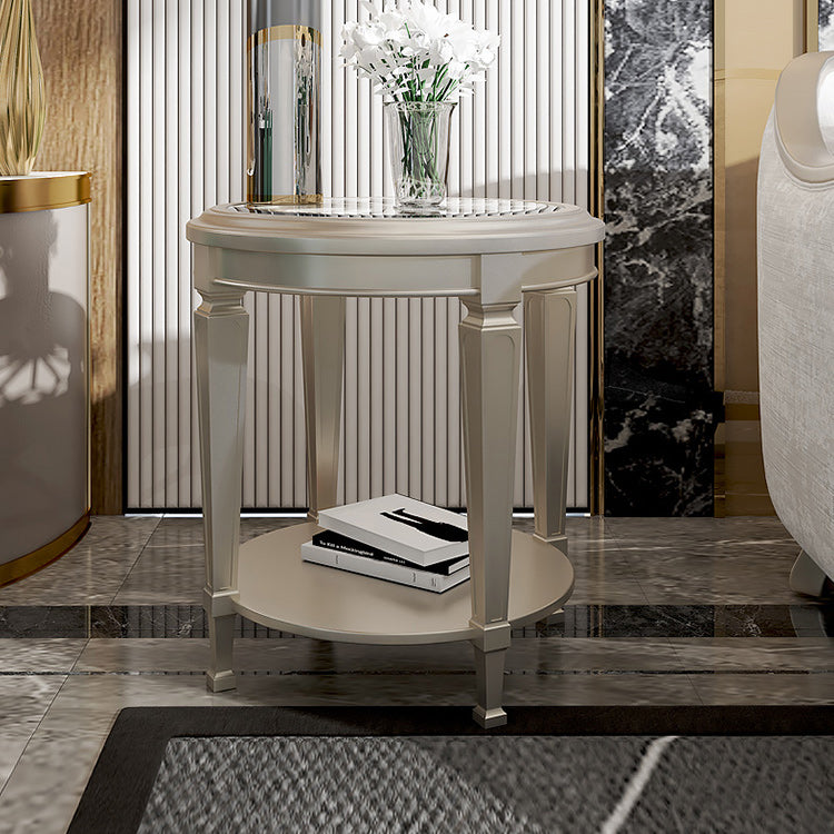 26" Tall 4 Legs Solid Wood End Table Contemporary Round Double Tier End Table