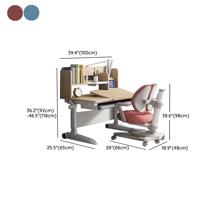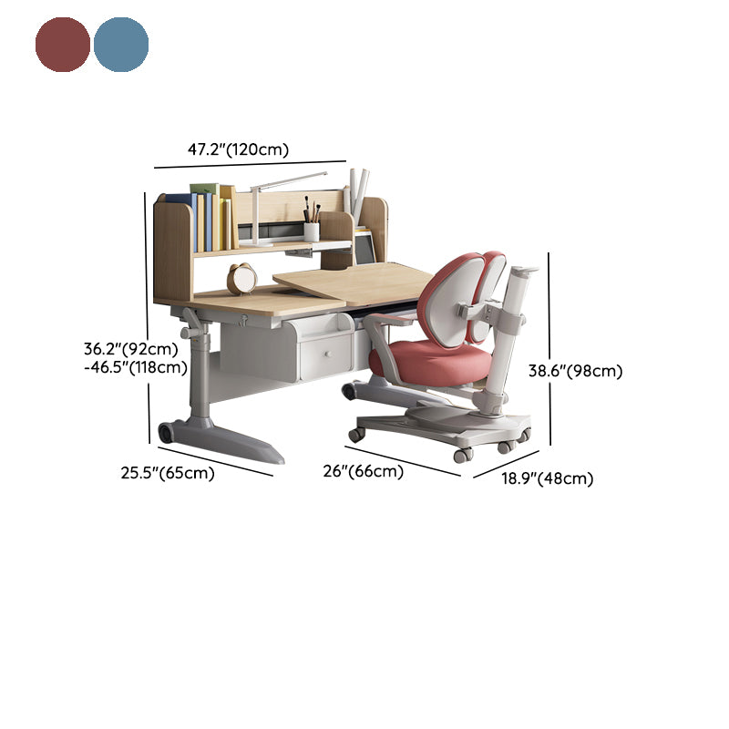 Adjustable Writing Desk Home Table and Chair Set with Storage Shelves