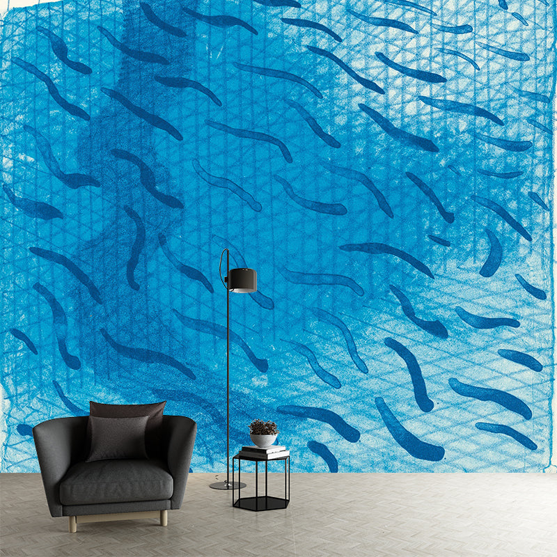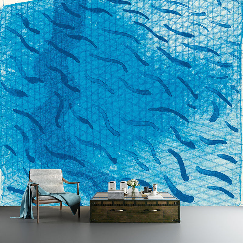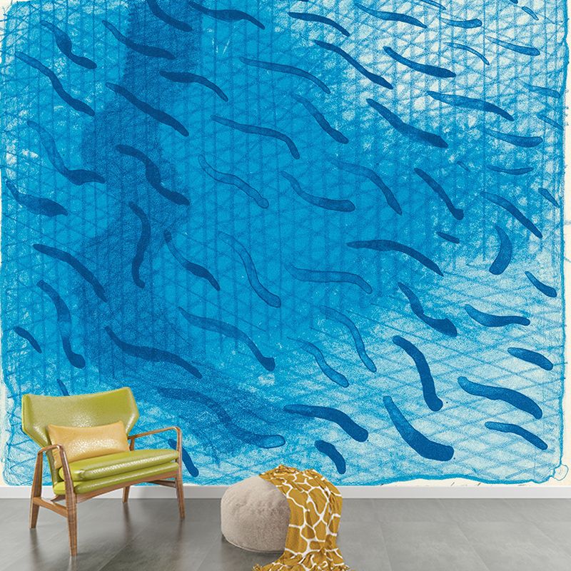 Art Swimming Pool Fish Murals Blue David Hockney Painting Wall Decor for Bedroom