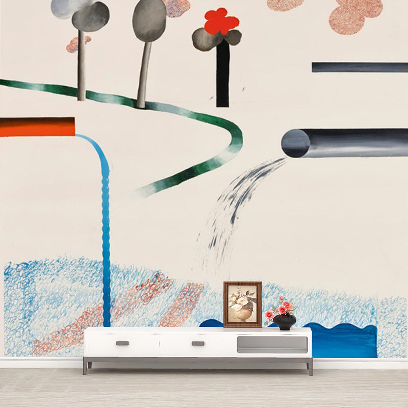 Blue-Brown Pool Painting Mural Water Resistant Art Deco Living Room Wall Covering
