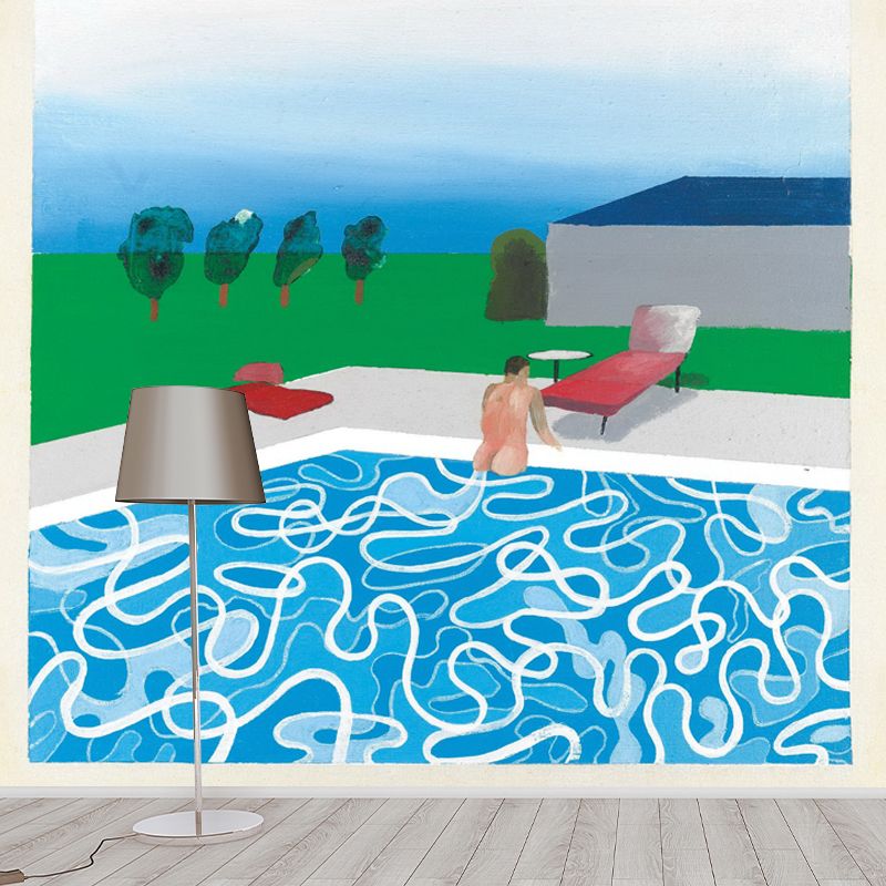 Blue-Green Pop Art Mural Decal Full-Size Pool Painting Wall Covering for Bedroom