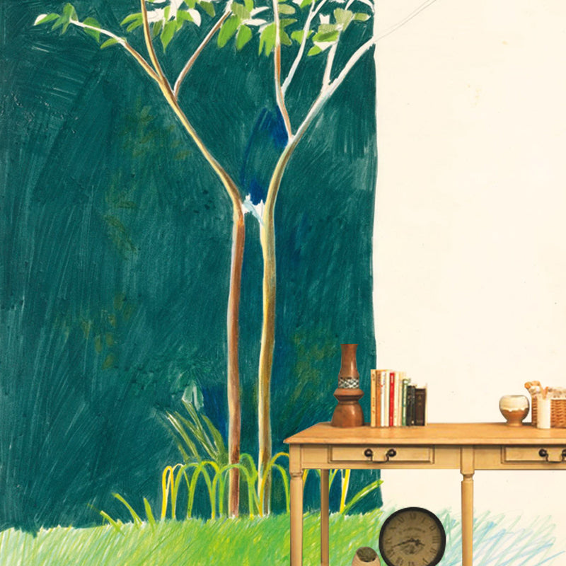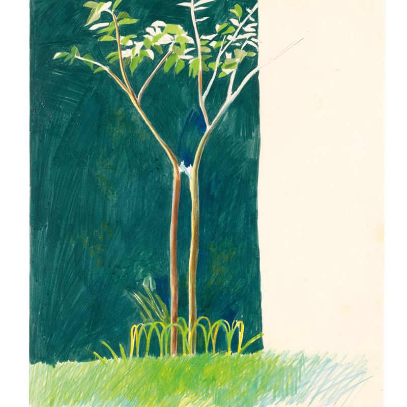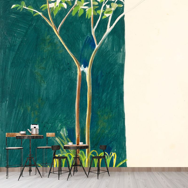 Blue-Green Small Tree Murals Wallpaper Waterproofing Wall Covering on Yellow for Bedroom