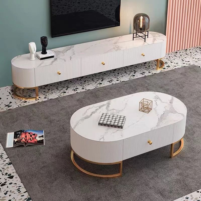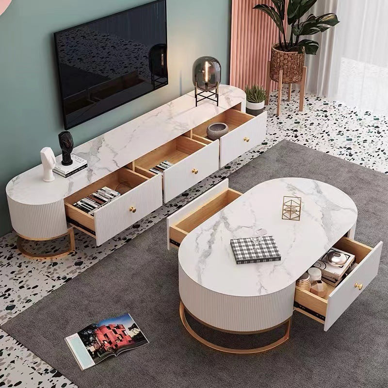 Contemporary Enclosed Storage TV Console White Stone TV Stand Console for Living Room