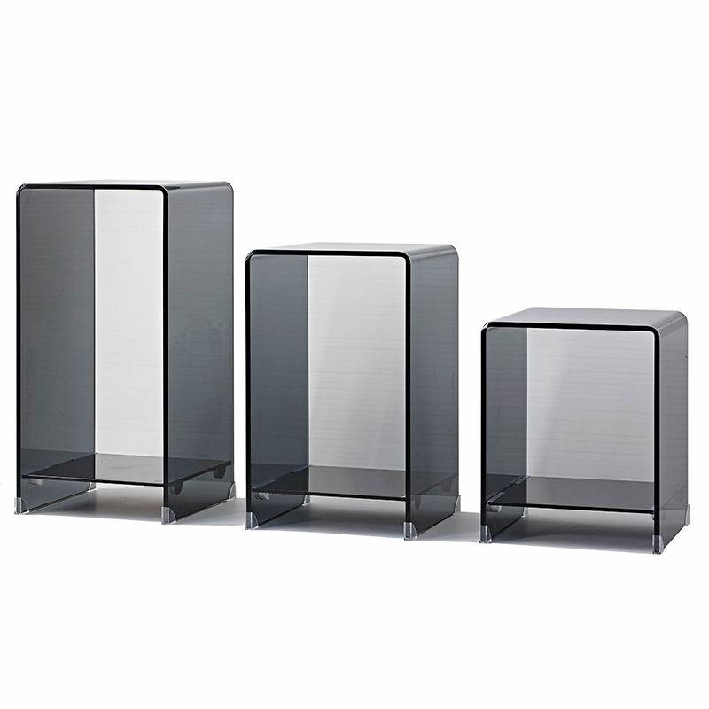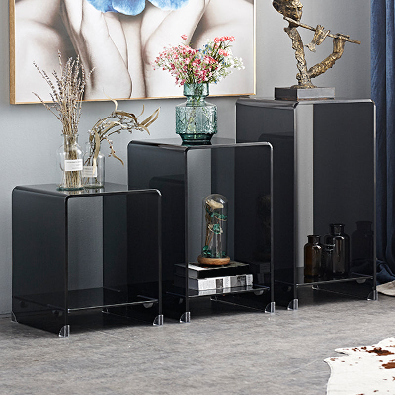 Contemporary Glass Square Side Table Sled End Table with Shelf