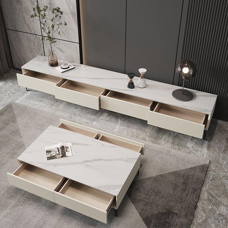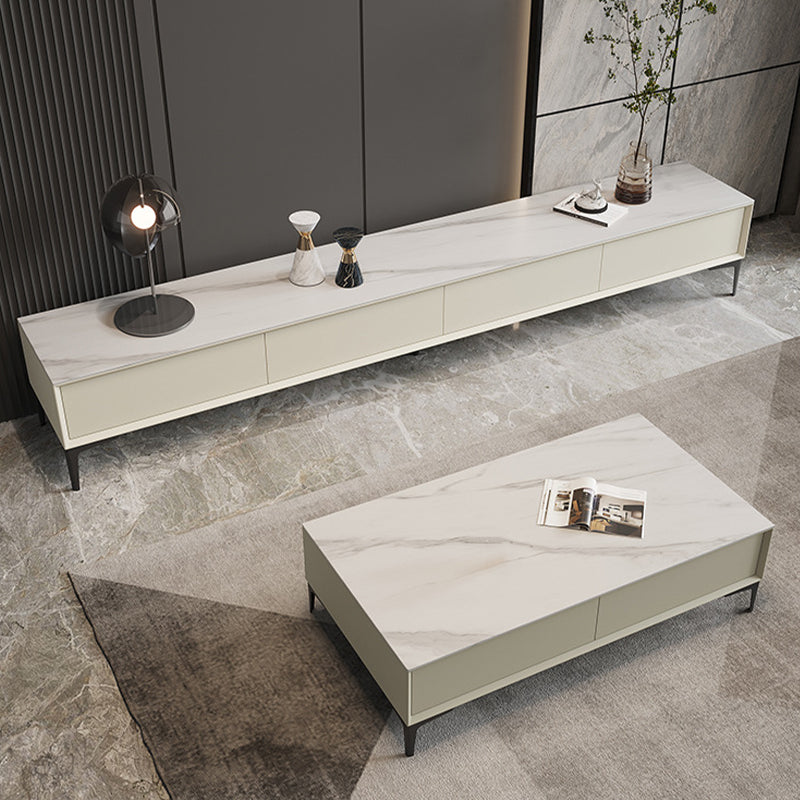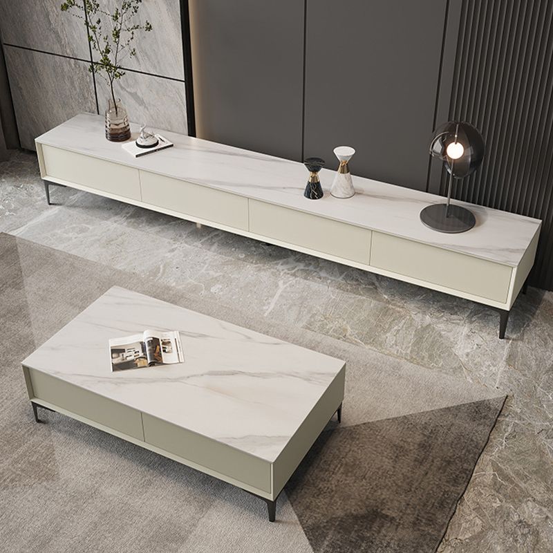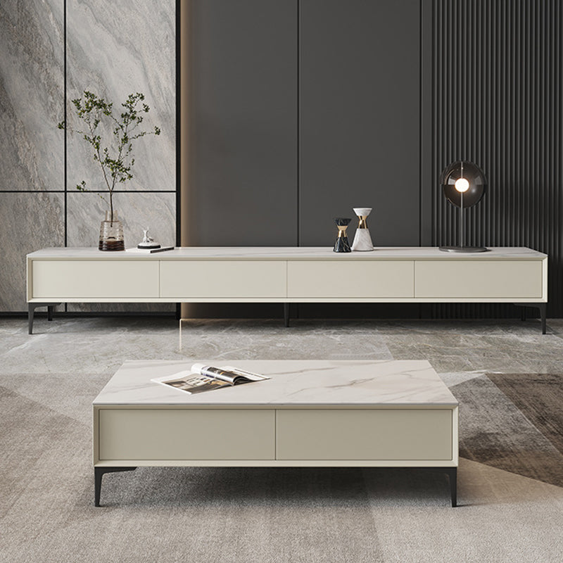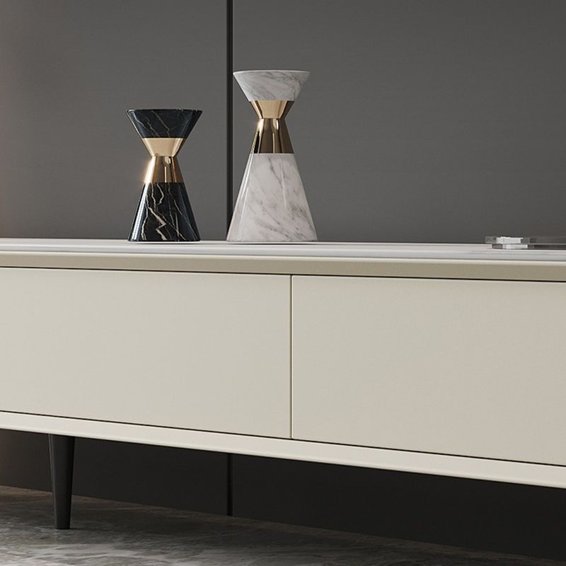 Contemporary Media Console Stone Enclosed Storage TV Stand for Living Room