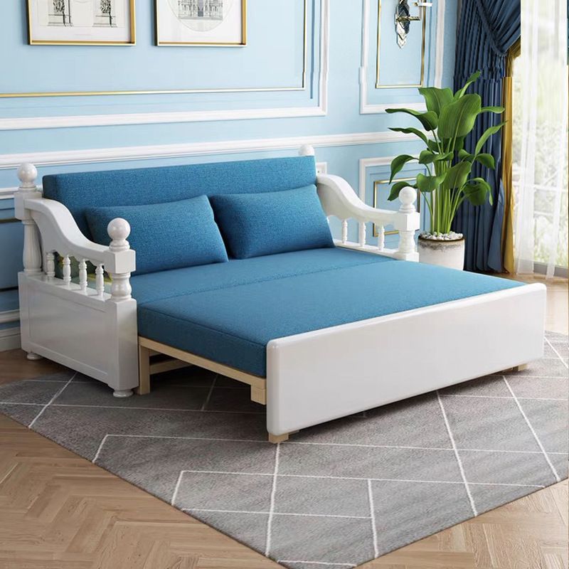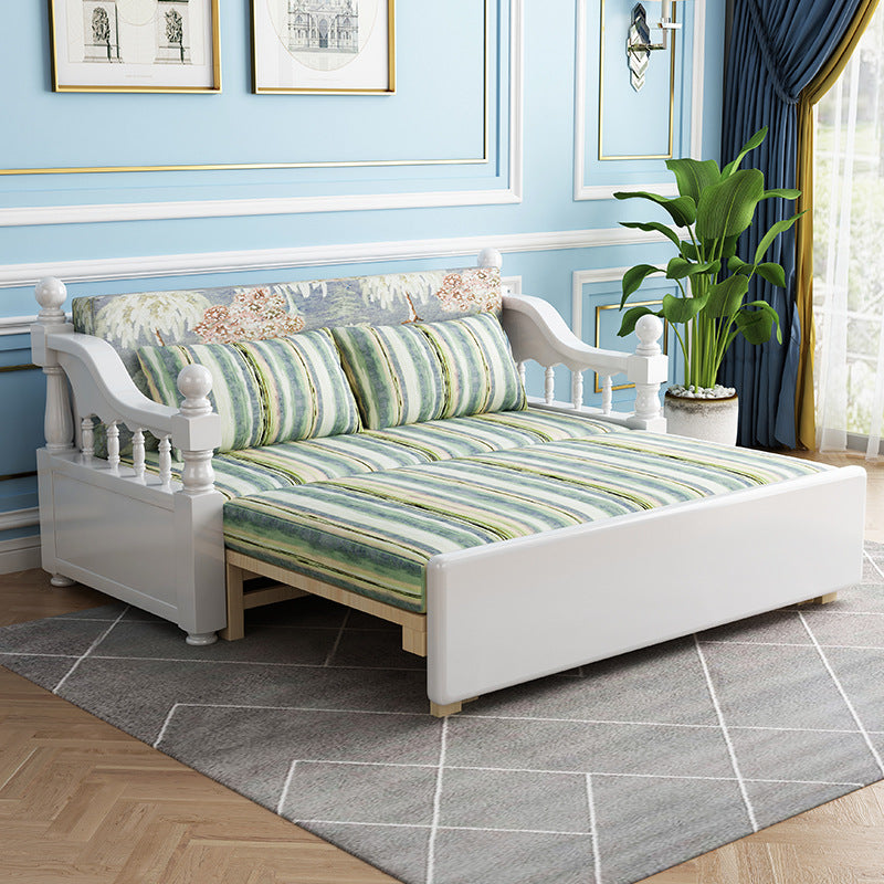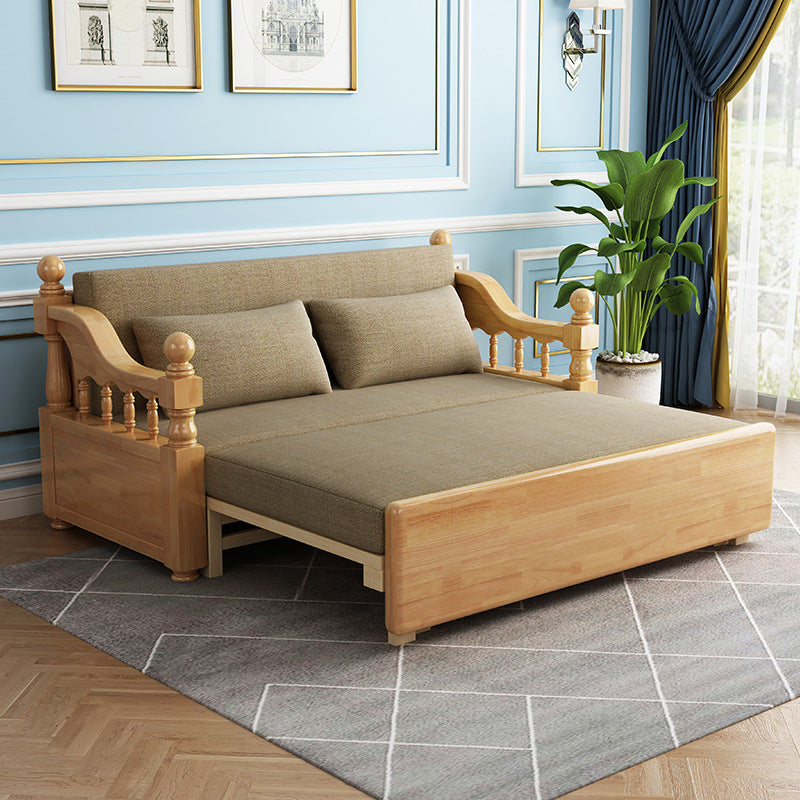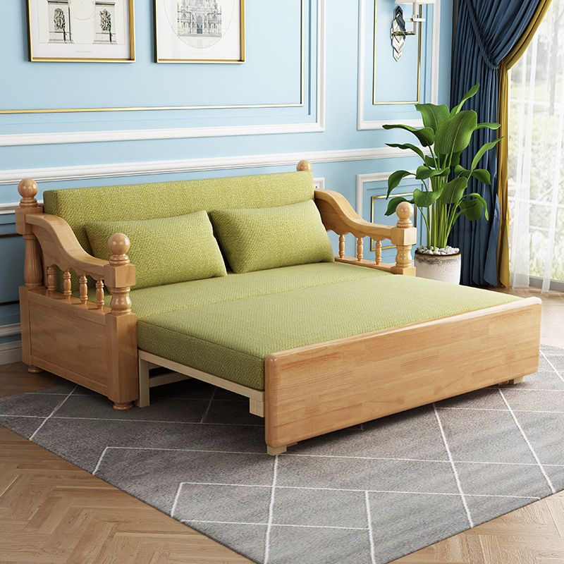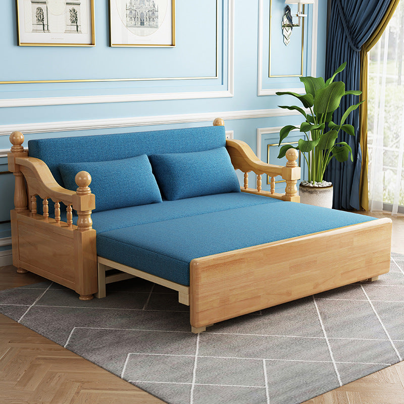 Contemporary Solid Wood Fabric No Theme Rubberwood Upholstered Bed