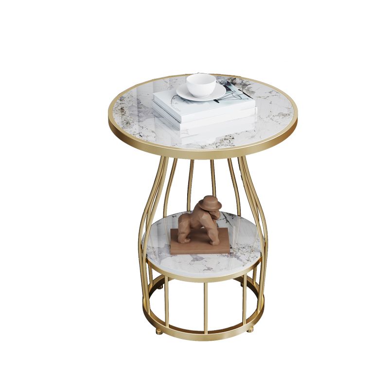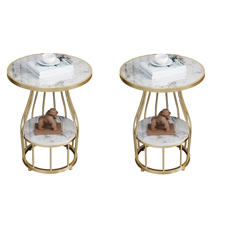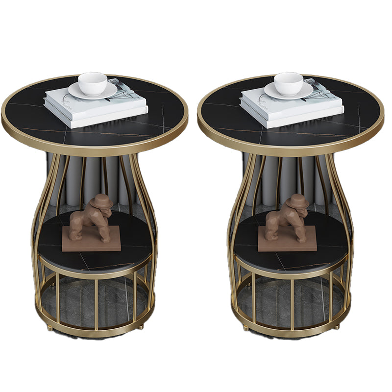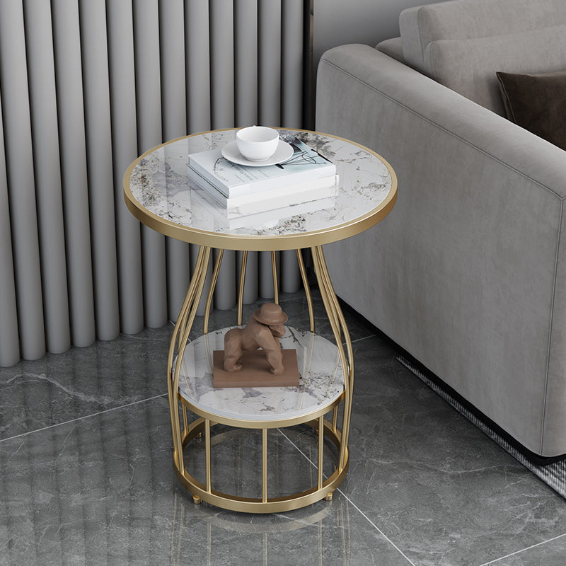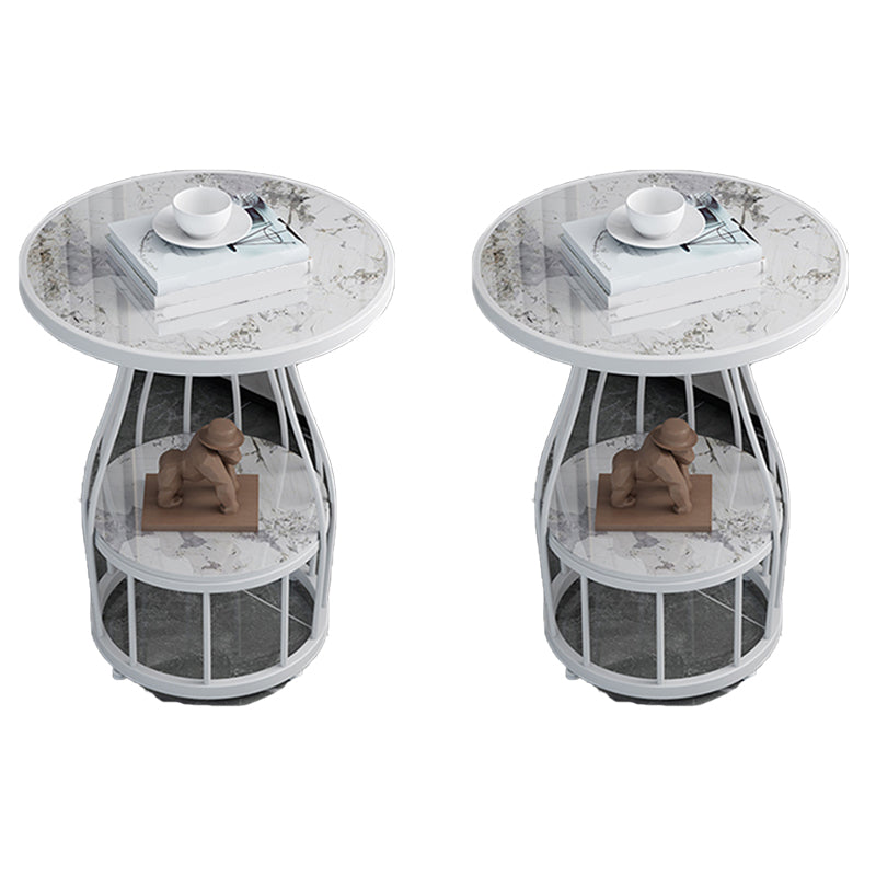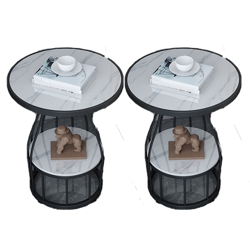 Contemporary Stone Top End Table Dia 19.69" Frame Shelf Included Side Table