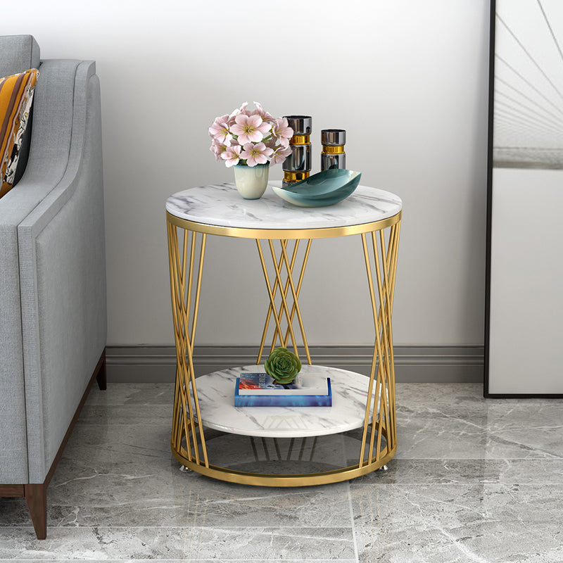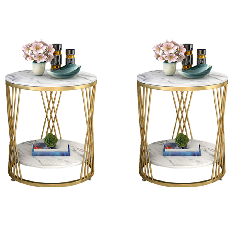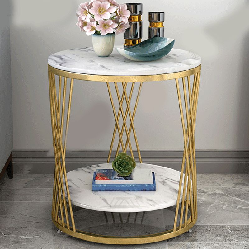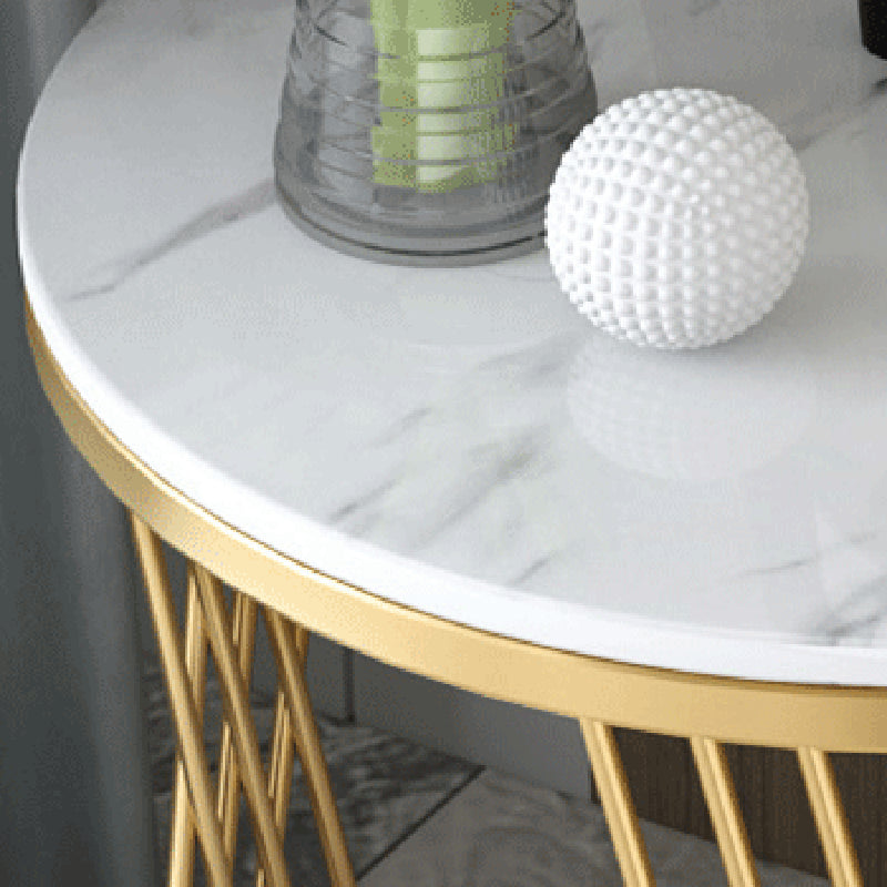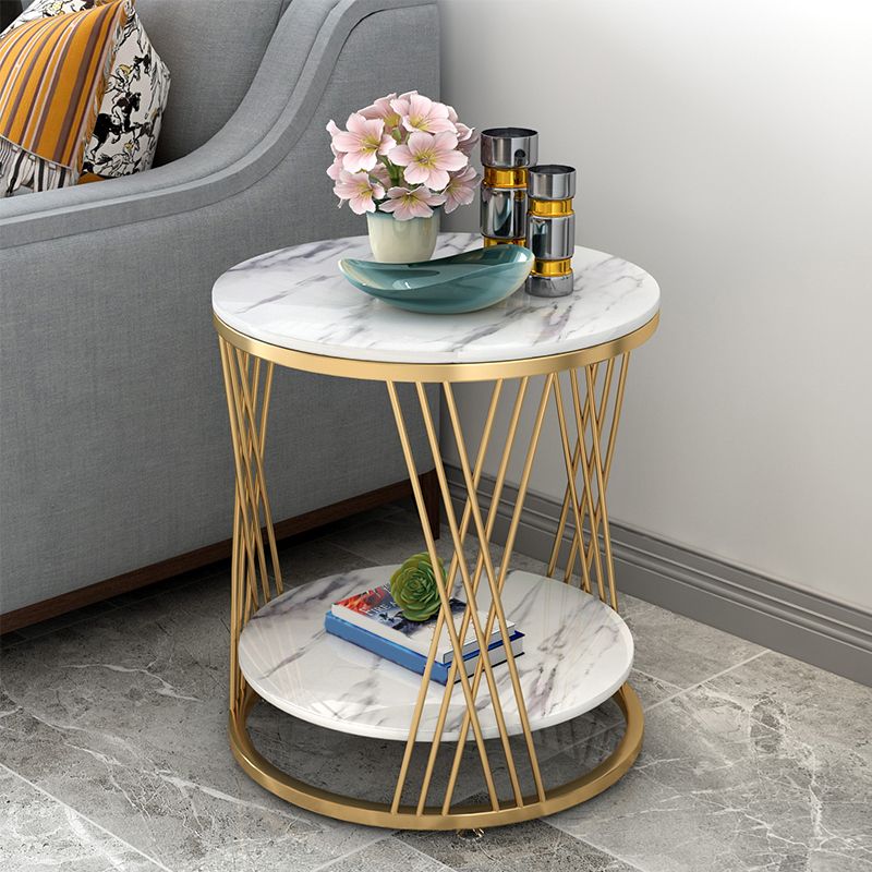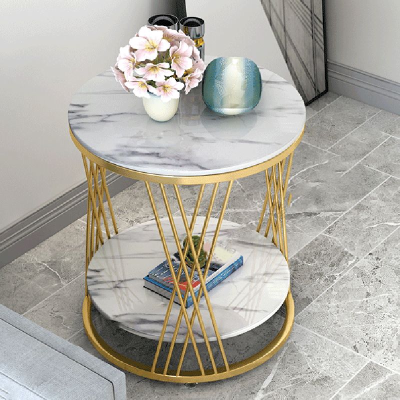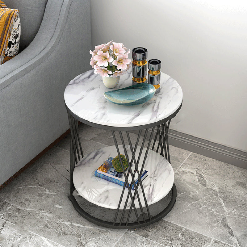 Contemporary Storage Frame End Table Round End Table with Slate Top