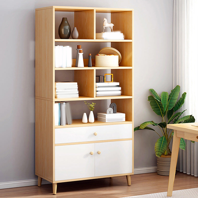 Contemporary Wooden Cabinet with Shelves and Drawers and Straight Legs