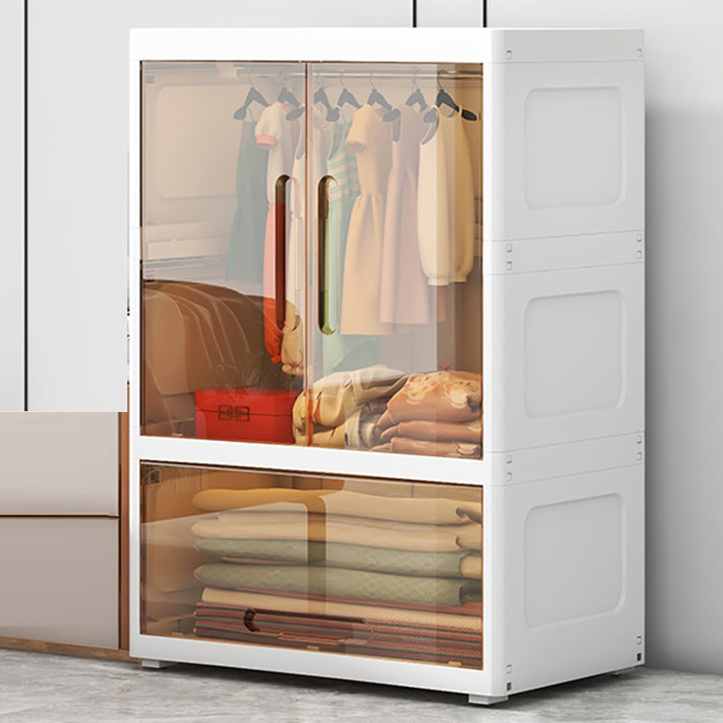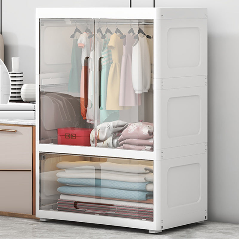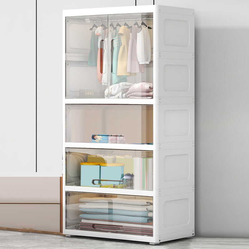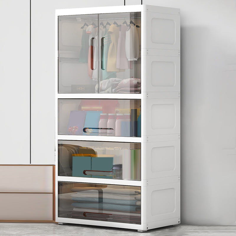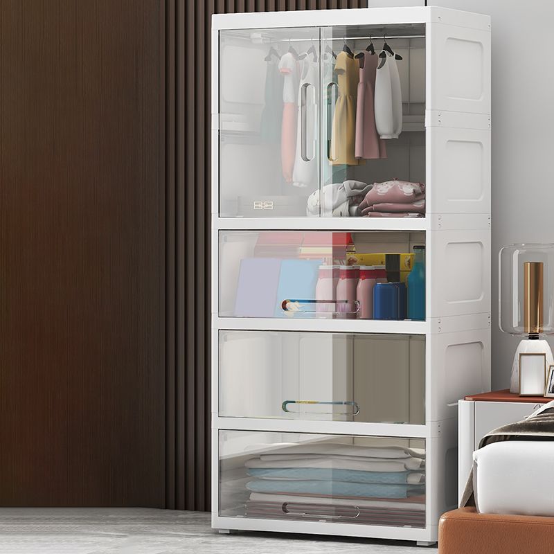 Contemporary Youth Armoire Plastic Bedroom Hanging Clothes Rack with Door