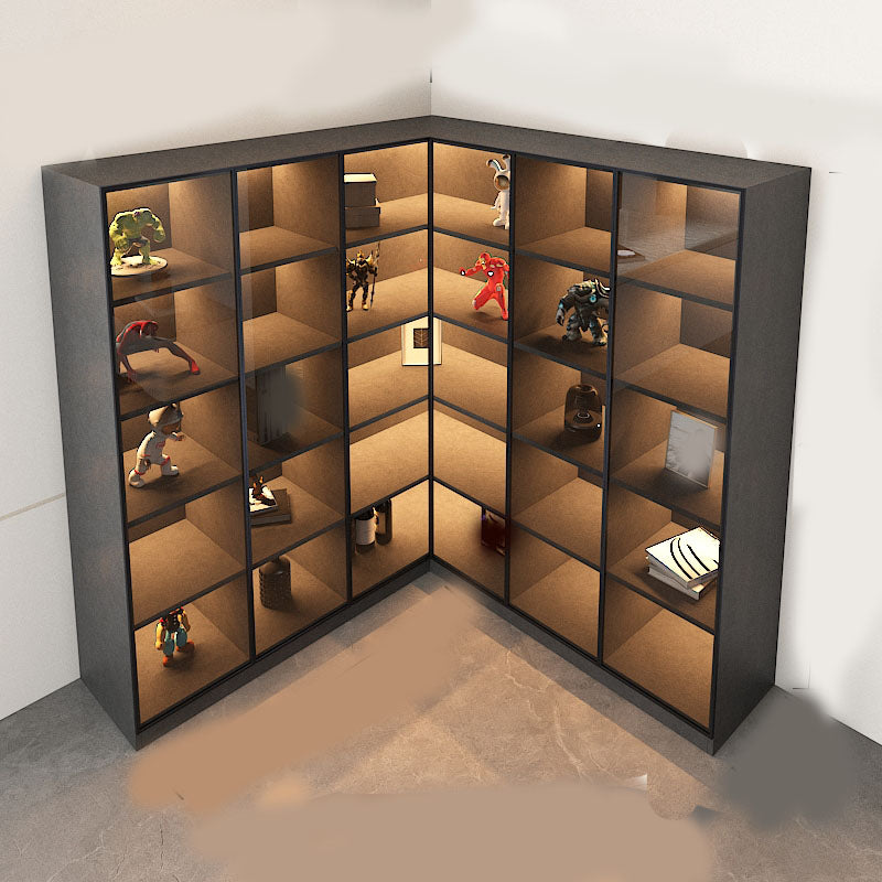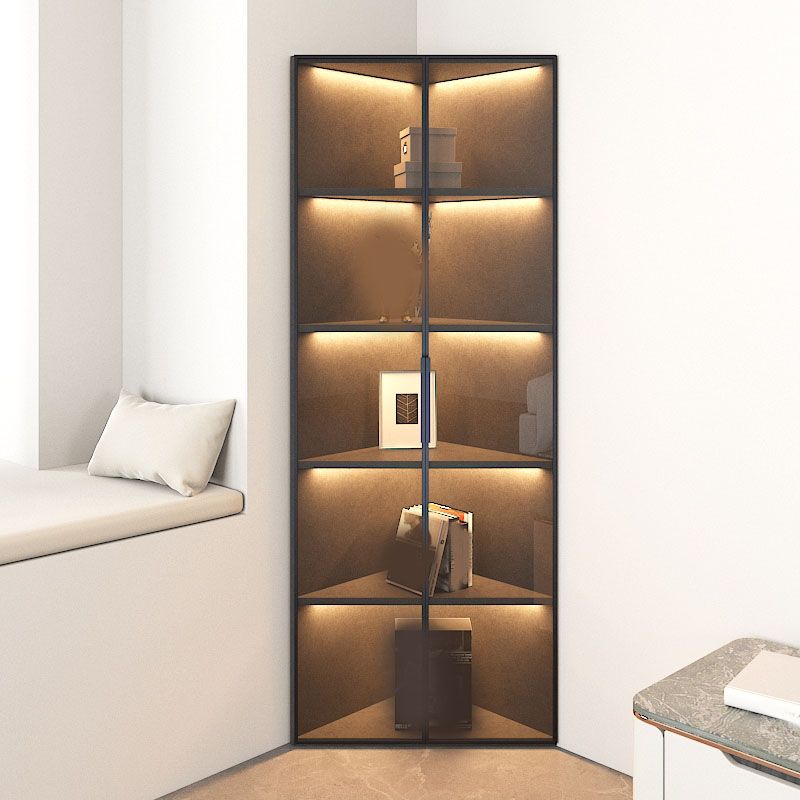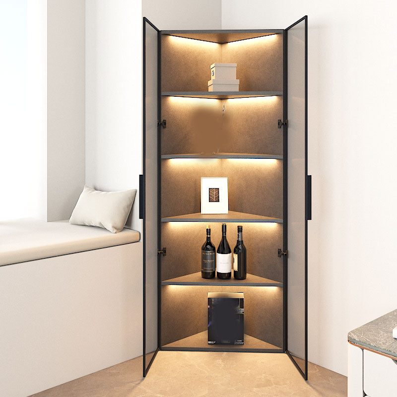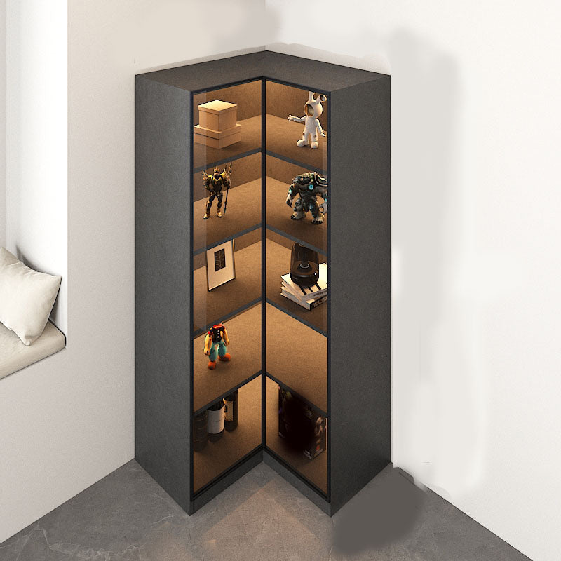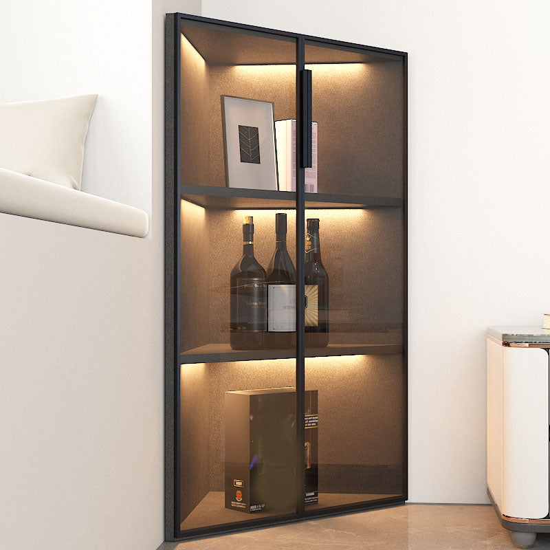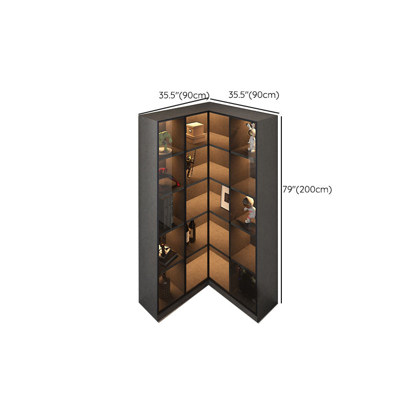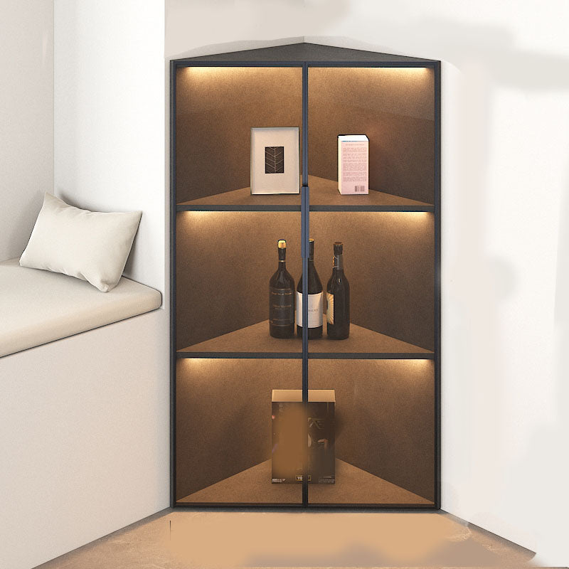 Corner Glass Paned Wood No Distressing Contemporary Accent Cabinet