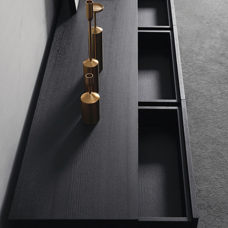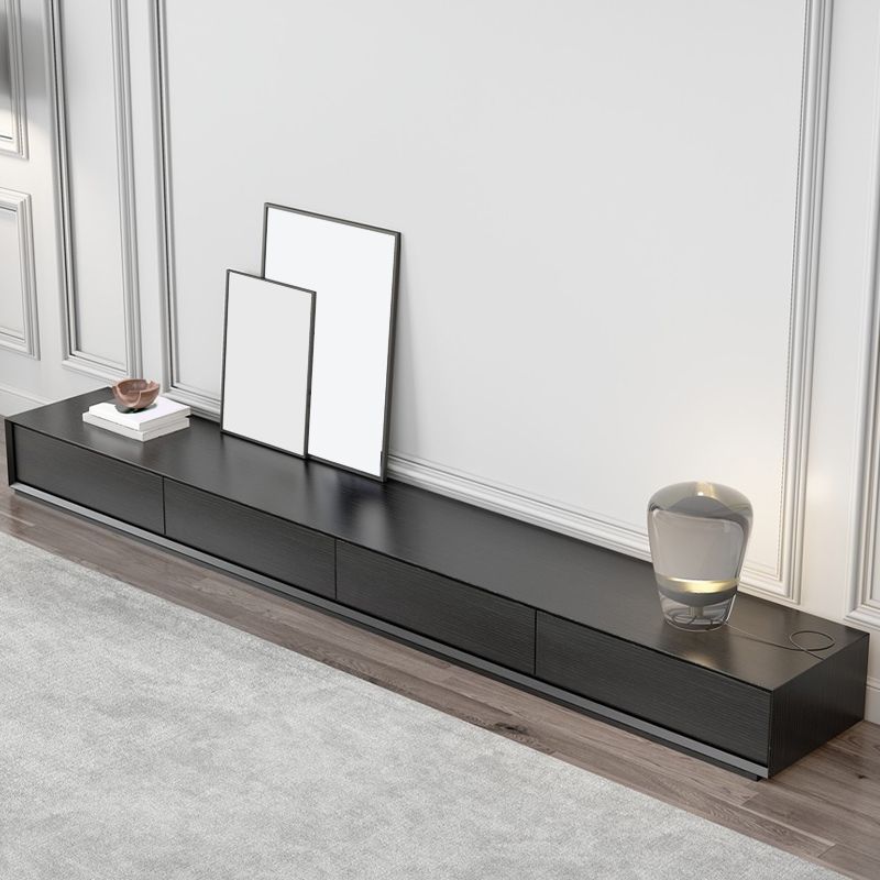 Faux Wood Media Console Modern Black Cable Management TV Console